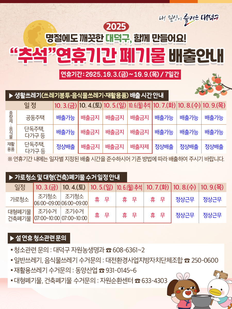 2025년 추석 연휴 생활쓰레기 배출 안내