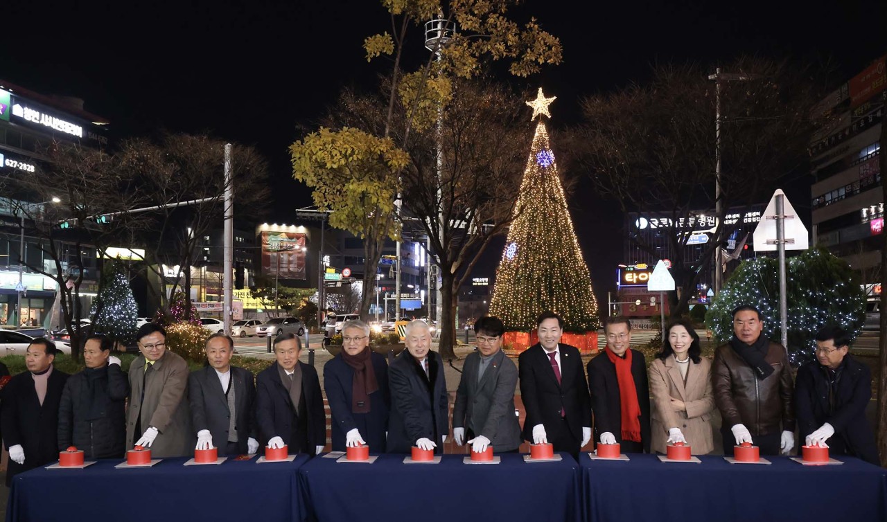 대전 대덕구, 2024년 연말연시 성탄 트리 점등 중리네거리서 불 밝혀… “환한 불빛처럼 밝고 따뜻한 연말 되시길” 대전 대덕구(구청장 최충규)는 10일 대덕구 중리네거리에서 구민의 행복과 희망을 위한 성탄 트리 점등식을 개최했다고 밝혔다. 대덕구와 대덕구기독교협의회(회장 박동천) 주관으로 개최된 이번 성탄 트리 점등 행사는 대덕구기독교협의회 임원 및 주민 등 200여 명이 참석한 가운데 예배와 점등, 축사 순으로 진행됐다. 최충규 대덕구청장은 “이번 성탄 트리의 따뜻한 불빛이 구민들에게 위로와 희망의 메시지를 전달하는 계기가 될 것”이라며 “아름다운 불빛과 함께 따뜻한 연말 보내시길 바란다”라고 전했다. 한편, 이날 점등한 성탄 트리는 내년 1월 12일까지 불을 밝힐 예정이다. [사진 설명(1) : 최충규 대덕구청장(사진 왼쪽 여덟 번째)과 대덕구기독교협의회 임원 및 관계자들이 10일 대덕구 중리네거리에서 성탄 트리 점등식 행사를 진행하고 있다.] [사진 설명(2) : 대전 대덕구(구청장 최충규) 중리네거리에 불을 밝힌 성탄 트리.] |