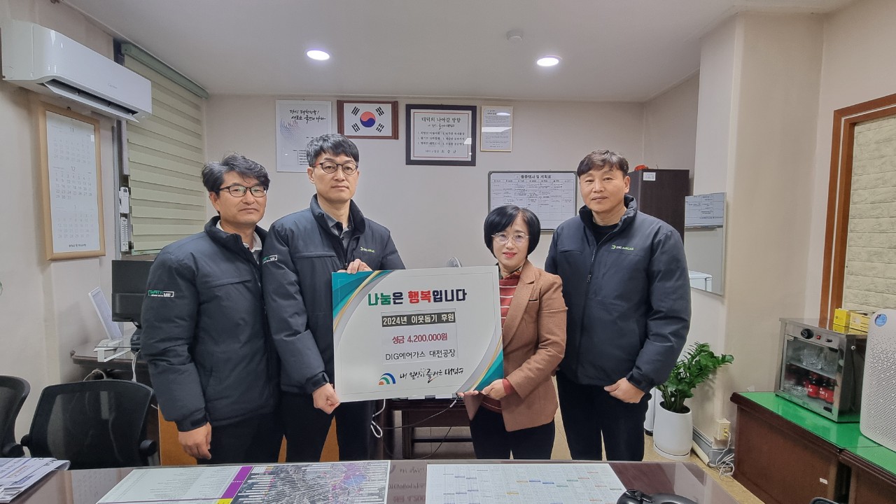 DIG에어가스(주) 대전공장, 대덕구 덕암동에 이웃돕기 성금 420만원 기탁