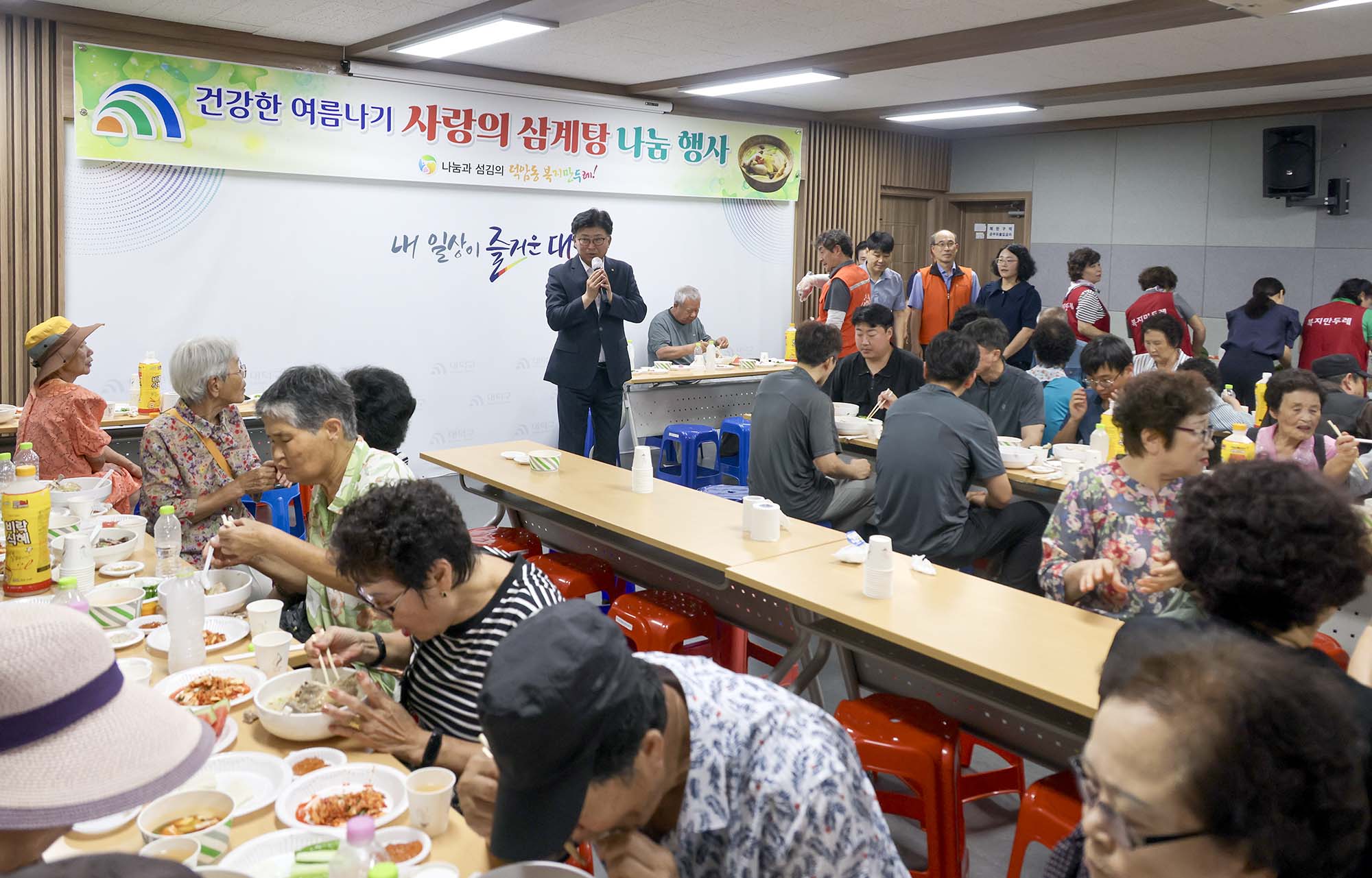 대덕구 덕암동 복지만두레, 말복 맞이 사랑의 삼계탕 나눔 저소득 어르신·환경미화원 등 300여 명 초청해 감사의 마음 전달 대전 대덕구 덕암동은 덕암동 복지만두레(회장 장길완)는 말복을 맞아 지역 저소득 어르신과 취약계층 300여 명을 초청한 가운데 ‘사랑의 삼계탕 나눔 행사’를 개최했다고 7일 밝혔다. 어르신들의 건강한 여름나기를 기원하고, 지역 내 이웃 간 온정을 나누기 위해 마련된 이번 행사는 복지만두레 회원들이 기획부터 조리, 배식까지 직접 참여해 정성스럽게 준비한 삼계탕과 다과를 제공했다. 특히 올해는 청소와 거리 환경 정비에 앞장서온 지역 환경미화원들도 초청해 지역사회 정비에 헌신한 노고에 감사의 마음을 전하는 뜻깊은 시간도 함께 마련됐다. 장길완 덕암동 복지만두레 회장은 “앞으로도 정기적인 나눔 활동을 지속해 모두가 건강하고 따뜻한 공동체를 만들어가는 데 힘쓰겠다”고 전했다. 홍경철 덕암동장은 “복지만두레 회원님들과 협력해 따뜻한 이웃 사랑을 실천해 주신 모든 분께 감사드린다”며 “동에서도 복지사각지대 해소와 따뜻한 지역사회를 만들기 위해 더욱 노력하겠다”고 말했다. [사진 설명 : 최충규 대덕구청장이 건강한 여름나기 사랑의 삼게탕 나눔 행사에서 격려 인사를 하고 있다.] |