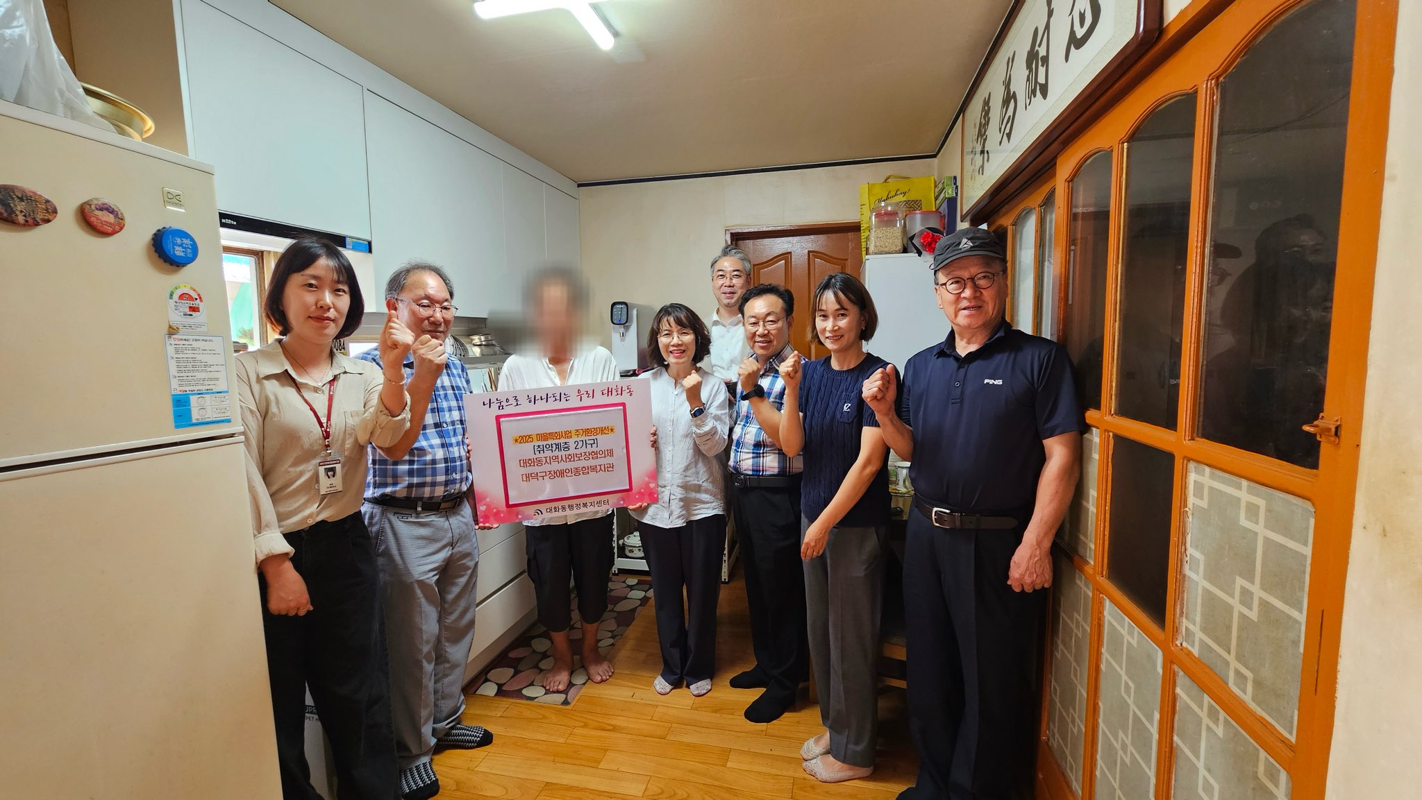 대전 대덕구 대화동, 취약계층 대상 맞춤형 주거환경개선 나서 대화동 지역사회보장협의체, 에어컨·싱크대 설치 등 생활 밀착형 복지 지원 대전 대덕구 대화동은 대화동 지역사회보장협의체(민간위원장 이기태)가 지역 취약계층의 생활 여건을 개선하기 위한 ‘맞춤형 주거환경개선 사업’을 추진했다고 21일 밝혔다. 이번 사업은 무더위와 노후 시설로 일상생활에 불편을 겪는 은둔형 중장년과 노인 부부 등 기초생활수급자 2가구를 대상으로 실시됐다. 협의체는 해당 가구에 에어컨과 싱크대를 새롭게 설치하고, 낡은 변기를 교체했다. 또, 모기와 해충 등 위생 문제를 해결하기 위한 방역 작업도 함께 진행해 쾌적하고 안전한 주거환경을 조성하는 데 중점을 두었다. 이기태 지역사회보장협의체 위원장은 “이번 사업으로 무더위와 낡은 시설로 불편을 겪던 이웃들이 한결 쾌적하게 생활할 수 있게 돼 보람을 느낀다”며 “앞으로도 작은 부분까지 세심히 살펴 주민들에게 실질적인 도움이 될 수 있는 지원을 이어가겠다”고 말했다. 장선영 대화동장은 “이번 주거환경개선 사업은 민간자원과 행정이 힘을 합쳐 마련된 것”이라며 “앞으로도 민관협력을 강화해 복지사각지대 해소는 물론 더 나은 대화동을 만들기 위해 최선을 다하겠다”고 전했다. 한편, 이번 사업의 실효성을 높이기 위해 민관이 긴밀하게 협력한 가운데 사업 재원은 대화동 지역사회보장협의체의 공동모금회 지정기탁금과 대덕구장애인종합복지관의 민관협력 돌봄체계 활성화 사업비를 통해 마련됐다. 대화동 지역사회보장협의체는 도배·장판 교체 등 꾸준한 주거환경개선 사업을 추진해 왔으며, 민간자원 발굴과 연계를 통해 지역 주거취약가구 지원을 지속적으로 이어갈 계획이다. [사진 설명 : 대화동 지역사회보장협의체 위원들이 21일 대화동 내 주거 환경이 열악한 취약계층 주민을 위해 싱크대를 교체 설치한 후 기념 촬영을 하고 있다.] |