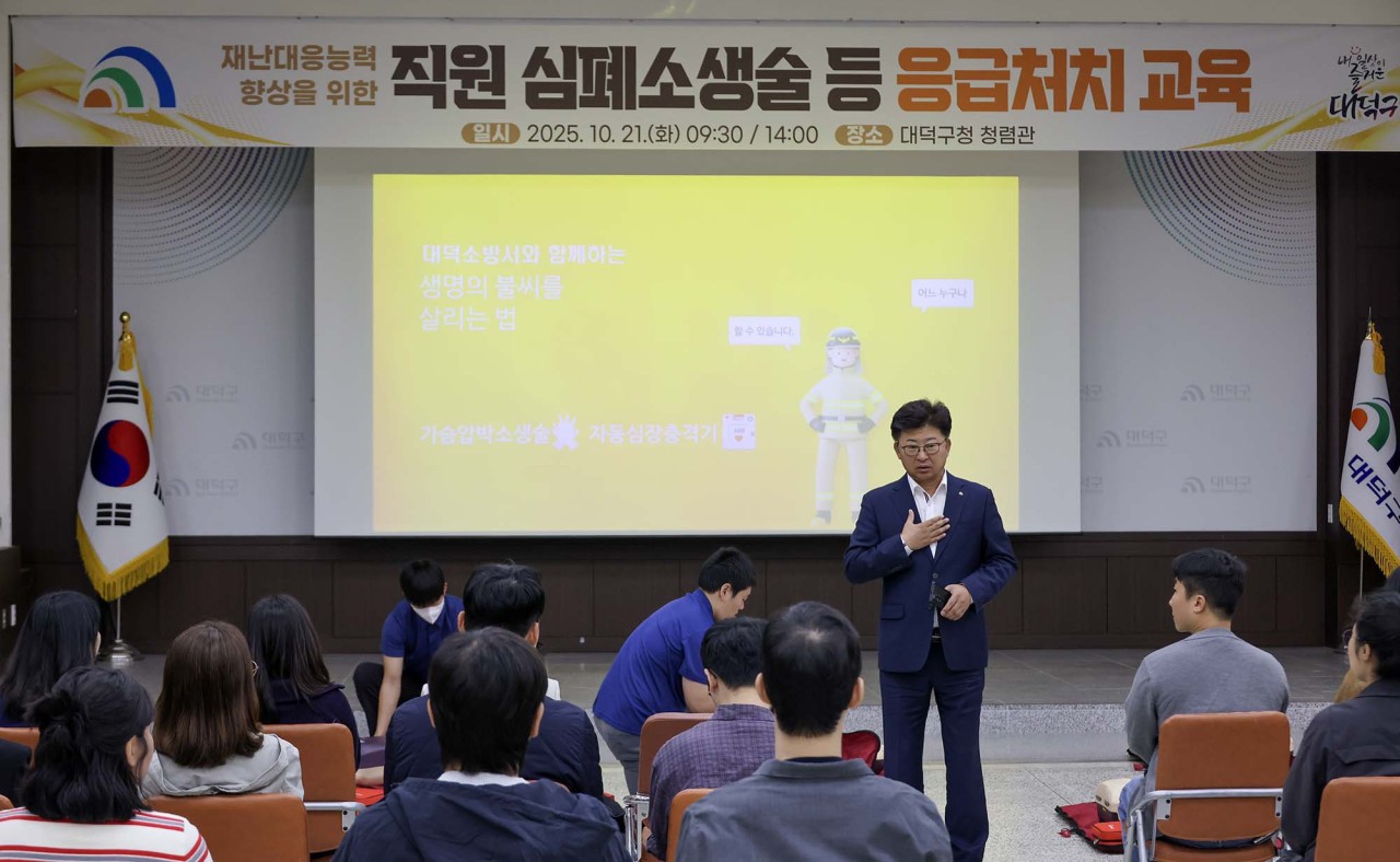 대전 대덕구(구청장 최충규)는 21일 구청 청렴관에서 공직자의 응급 상황 대응 역량 강화를 위한 심폐소생술(CPR) 및 응급처치 교육을 실시했다고 밝혔다.