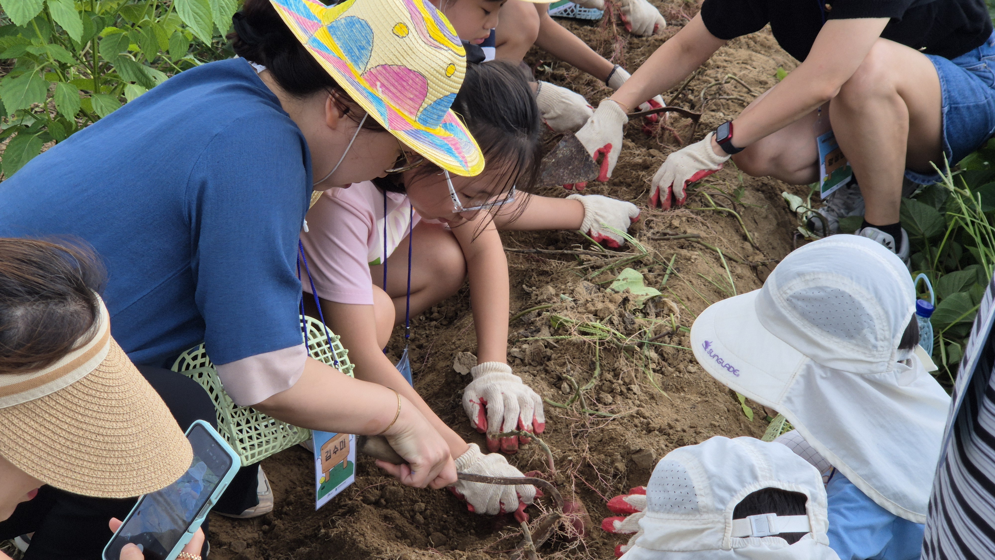 [사진 설명(1) : 대덕문화관광재단이 운영한 ‘팜스테이’ 프로그램에 참가한 가족들이 소슬촌 농촌체험마을에서 농작물을 직접 수확하며 즐겁게 체험활동을 하고 있다.]