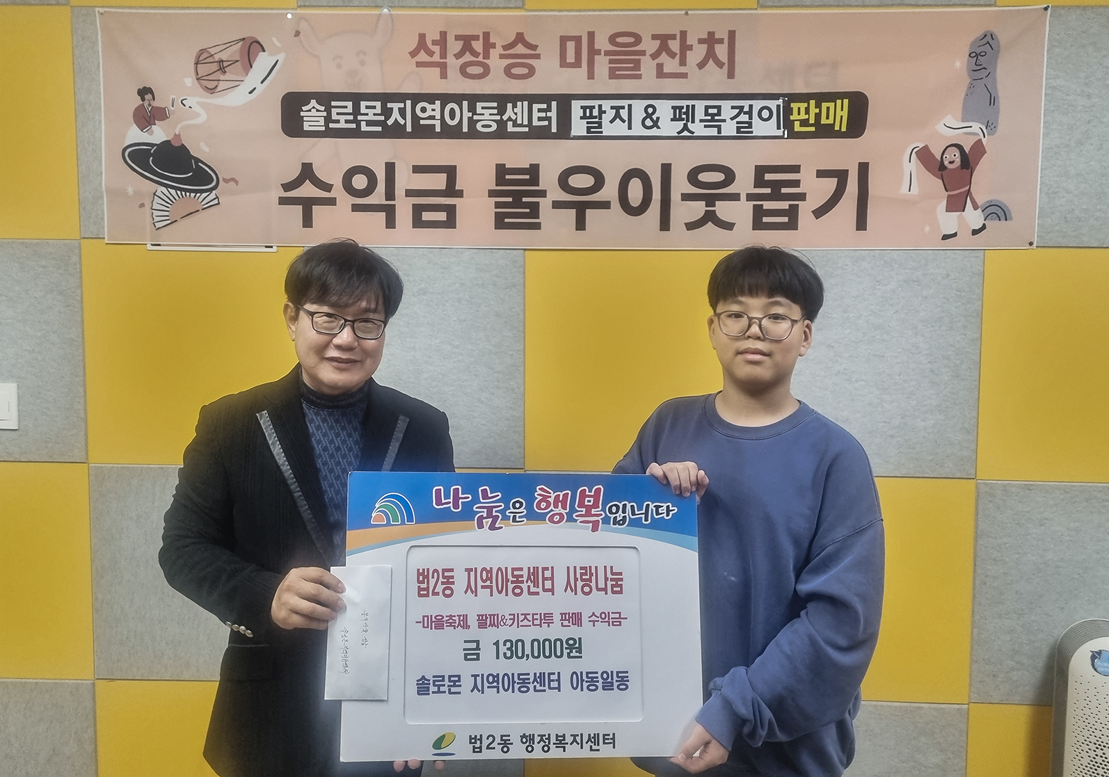 6. 대전 대덕구 법2동 솔로몬지역아동센터 축제 체험 부스 수익금 기탁.hwp(72.5KB) 6. 대전 대덕구 법2동 솔로몬지역아동센터 축제 체험 부스 수익금 기탁.jpg(1MB) |