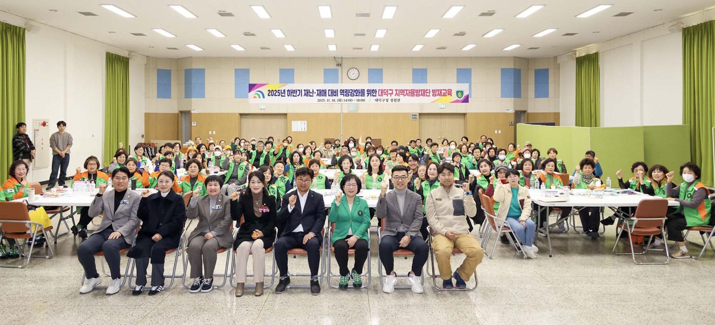 대전 대덕구, 실습형 방재교육 진행… 재난 대응력 강화 지역자율방재단·공무원 160여 명 참여… 일상 도구 활용한 실습 중심 교육 팀별 시나리오 기반 훈련 통해 현장 대응력 향상도… 안전 역량 제고 앞장 대전 대덕구(구청장 최충규)는 18일 구청 청렴관에서 대덕구지역자율방재단(단장 김미자)과 공무원 160여 명을 대상으로 ‘2025년 하반기 재난·재해 대비 역량 강화를 위한 방재교육’을 실시했다. 교육은 재난 현장에서 쉽게 활용할 수 있는 일상 도구를 기반으로 진행됐다. 신문지와 판자로 부목을 제작하고, 이불과 옷으로 들것을 만드는 등 생활 속 재료를 활용한 응급 대응법을 익혔다. 또한, 은박담요를 이용한 체온 유지법 등 필수 안전기술도 함께 배우며 실전 감각을 높였다. 특히 팀별 시나리오 기반 훈련을 통해 가상 재난 상황에서의 협업 능력과 현장 대응력을 높이는 데 중점을 뒀다. 김미자 대덕구 지역자율방재단장은 “이번 교육으로 신규 단원과 기존 단원의 역량을 함께 강화할 수 있는 기회가 됐다”며 “일상 도구로 실전 기술을 익히는 교육이 실제 위기 상황에서 큰 도움이 될 것”이라고 말했다. 최충규 대덕구청장은 “이상기후로 재난 발생을 예측하기 어려운 만큼 지역의 특성을 잘 알고 있는 지역자율방재단의 역할이 더욱 중요하다”며 “앞으로도 지역 안전을 지키는 핵심 조직으로서 든든한 역할을 기대한다”고 밝혔다. 한편, 대덕구 지역자율방재단은 12개 동 160여 명의 단원으로 구성된 봉사단체로, 평상시 재난 예방․대비․대응․복구 등 지역 안전을 위한 다양한 방재 활동에 적극 참여하고 있다. 또한, 지난 14일에는 젊은 세대의 재난 예방 참여를 확대하기 위해 ‘청년자율방재단’을 출범시키며 재난 대응 역량의 범위를 넓혀가고 있다. [사진 설명(1) : 최충규 대덕구청장이 18일 구청 청렴관에서 열린 ‘2025년 하반기 재난·재해 대비 역량 강화를 위한 방재교육’에 참석해 자율방재단원들에게 당부의 말을 전하고 있다.] [사진 설명(2) : 최충규 대덕구청장(사진 첫 번째 줄 왼쪽 다섯 번째)과 김미자 대덕구지역자율방재단장(사진 첫 번째 줄 왼쪽 여섯 번째)과 대덕구의원 및 관계자들이 18일 구청 청렴관에서 ‘2025년 하반기 재난·재해 대비 역량 강화를 위한 방재교육’를 마친 후 파이팅을 외치며 기념 촬영을 하고 있다.] |