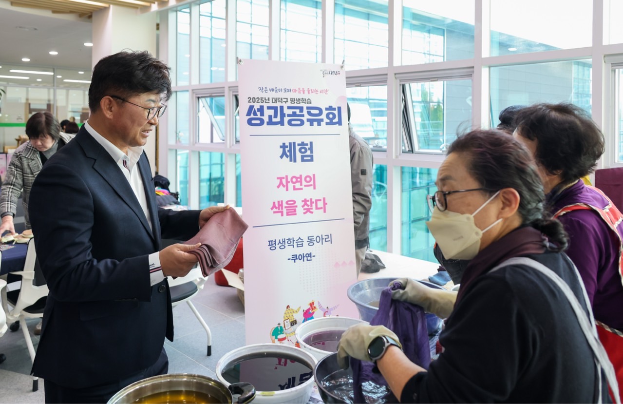“작은 배움이 모여 마음을 울리다” 대전 대덕구, 2025 평생학습 성과공유회 성황 장애인·평생학습관 프로그램 수강생 등 모여 학습 경험·성과 공유 학습기회 1072명 제공·특화 강좌 1817명 참여… 평생학습도시 기반 확장 대전 대덕구(구청장 최충규)는 19일 대덕구 평생학습관에서 열린 ‘2025년 평생학습 성과공유회–작은 배움이 모여 마음을 울리는 시간’을 성황리에 개최했다. 행사에는 장애인 평생학습 참여자, 일반 학습자, 동아리 회원, 배달강좌 참여자 등 다양한 주민들이 모여 1년 동안의 배움과 변화를 함께 나눴다. 프로그램은 △대덕구 평생학습도시 사업 소개 △장애인 평생학습 작품전시·공연 △평생학습 동아리 작품전시·공연 등으로 구성됐으며, 배움의 즐거움과 지역 학습문화의 성장을 체감하는 시간이 됐다. 대덕구 평생학습관은 지난해 8월 개관 이후 올해까지 총 3회차 평생학습 프로그램을 운영해 1072명의 주민에게 학습 기회를 제공했다. 또한 사회적 약자를 위한 특화 배달강좌 4회차(183개 강좌)를 운영해 1817명의 참여를 이끌었으며, 13개 평생학습 동아리를 육성하며 자발적 학습문화를 확산시켰다. 최충규 대덕구청장은 “이번 성과공유회가 주민들이 서로의 성취를 격려하며 배움의 가치를 되새기는 자리가 되었길 바란다”며 “앞으로도 교육·문화 접근성의 불균형을 해소해 누구나 일상 속에서 평생학습을 누릴 수 있는 도시를 만들겠다”고 말했다. [사진 설명(1) : 최충규 대덕구청장(사진 왼쪽)이 19일 대덕구 평생학습관에서 열린 ‘2025년 평생학습 성과공유회’에 참석해 평생학습 프로그램 동아리 수강생들이 만든 작품들을 관람하고 있다.] [사진 설명(2) : 최충규 대덕구청장(사진 왼쪽)이 19일 ‘2025년 평생학습 성과공유회’에서 평생학습 프로그램 동아리 체험 부스를 방문해 동아리 회원들에게 인사를 전하고 있다.] [사진 설명(3) : 최충규 대덕구청장(사진 왼쪽)이 19일 대덕구 평생학습관에서 열린 ‘2025년 평생학습 성과공유회’에 참석해 인사를 전하고 있다.] [사진 설명(4) : 최충규 대덕구청장(사진 첫 번째 줄 왼쪽 여섯 번째)과 장애인 평생학습 참여자, 일반 학습자, 동아리 회원, 배달강좌 참여자들이 19일 대덕구 평생학습관에서 열린 ‘2025년 평생학습 성과공유회’에서 파이팅을 외치며 기념 촬영을 하고 있다.] |