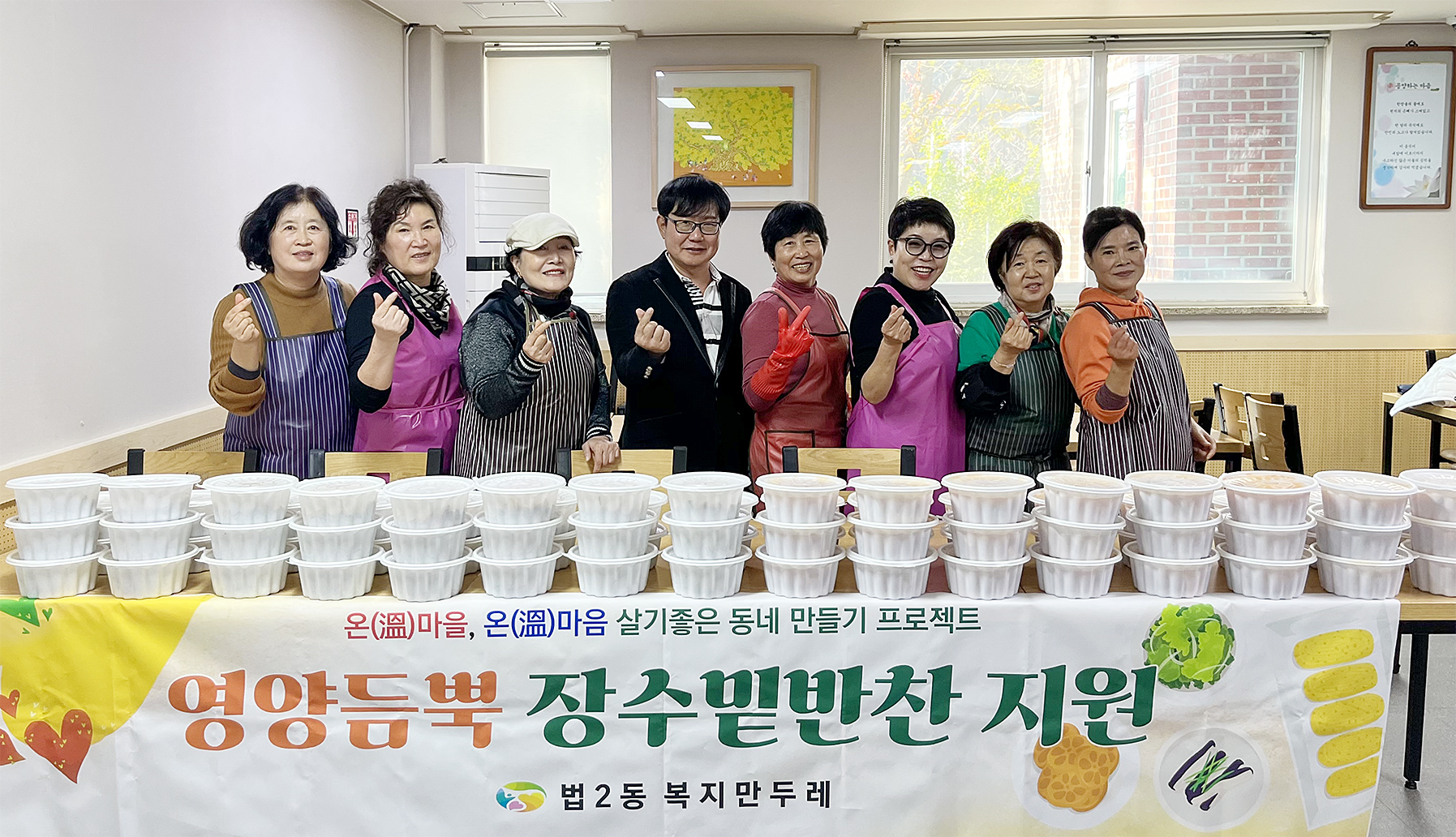 대전 대덕구 법2동 복지만두레, ‘영양듬뿍 장수밑반찬’ 전달 장애인․홀몸 어르신 등 30가구에 직접 만든 반찬 지원 대전 대덕구 법2동(동장 최은호)은 19일 복지만두레(회장 김미자)가 ‘영양듬뿍 장수밑반찬 지원사업’을 통해 장애인과 홀몸 어르신 등 30가구에 손수 만든 반찬을 전달했다고 밝혔다. 밑반찬 지역 내 돌봄이 필요한 이웃에게 정성 어린 식사를 지원하고자 매달 진행되고 있으며, 회원들이 직접 재료를 손질하고 조리해 영양을 고려한 다양한 반찬을 준비했다. 김미자 법2동 복지만두레 회장은 “회원들이 마음을 모아 정성껏 만든 반찬이 이웃들에게 작은 위로가 되길 바란다”고 말했다. 최은호 법2동장은 “항상 법2동의 어려운 이웃을 위해 꾸준히 나눔을 실천해주시는 복지만두레 회원분들께 깊이 감사드린다”고 전했다. [사진 설명 : 최은호 법2동장(사진 왼쪽 네 번째)과 법2동 복지만두레 회원들이 지역 장애인, 홀몸 어르신 등을 위한 밑반찬을 만든 후 기념 촬영을 하고 있다.] |