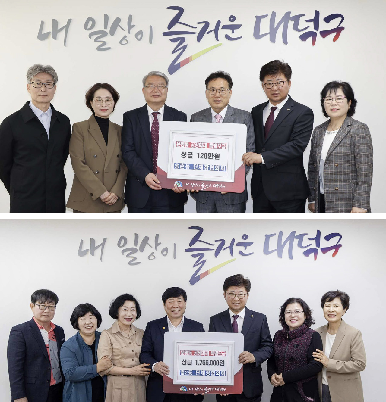 대전 대덕구 송촌동·법2동 단체장협의회, 문평동 공장 화재 성금 기탁