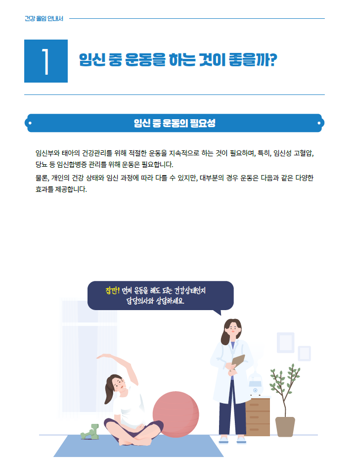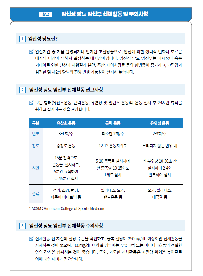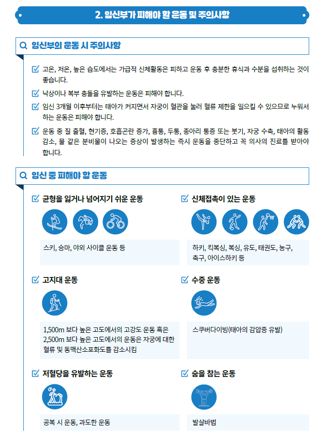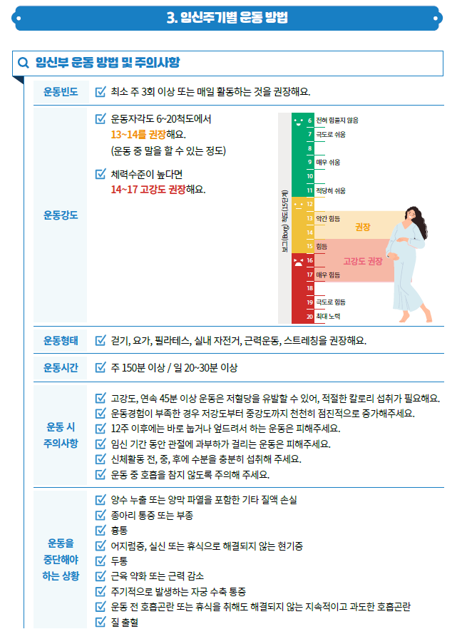 안녕하세요 대덕구 남부건강생활지원센터 신체활동 담당자 입니다! 2월달 운동정보는 한국건강증진개발원의 건강을 위한 올바른 임신부 신체활동 프로그램 안내서(건강올임)입니다. 붙임파일의 안내서를 참고하시어 건강하게 출산하고 산후 회복을 촉진하기 위한 신체활동을 꾸준히 해주시길 바랍니다. (출처) 한국건강증진개발원 (https://www.khepi.or.kr/kps) '건강올임 중 발췌' |