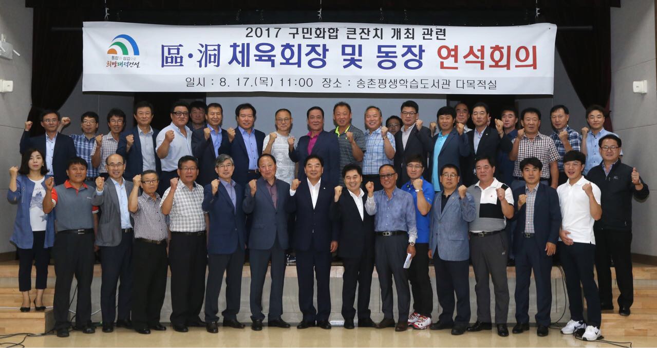 ‘대덕구민 화합 큰잔치’내달 30일 열린다 지난 17일, 구·동 체육회장 연석회의서 결정 대덕구(구청장 박수범)는 지난 17일 송촌평생학습도서관에서 대덕구민의 날을 기념해 개최하는 ‘구민화합 큰잔치’ 추진을 위한 구·동 체육회장 35명이 참석한 가운데 연석회의를 개최했다. 구는 매년 10월 첫째 주 토요일을 구민의 날로 지정해 구민화합 큰잔치 행사를 개최해 오고 있다. 올해에는 10월 첫째 주 토요일이 추석 연휴인 점을 감안해 9월 넷째 주 토요일인 30일에 개최하기로 결정했다. 특히 올해는 구민화합의 정신을 더욱 고취시키고자 12개 동 외에 관내 다문화가족 200여 명을 초청하여 13개 팀으로 구성, 개·폐회식, 동별 대항 체육대회, 구민 어울림 한마당 등 다채로운 프로그램이 진행될 예정이다. 박수범 대덕구청장은 “이번 구·동 체육회장 연석회의를 통해 도출된 의견을 적극 반영해 구민의 화합과 결속을 다지는 의미 있는 행사가 될 수 있도록 준비에 최선을 다하겠다”고 말했다. |