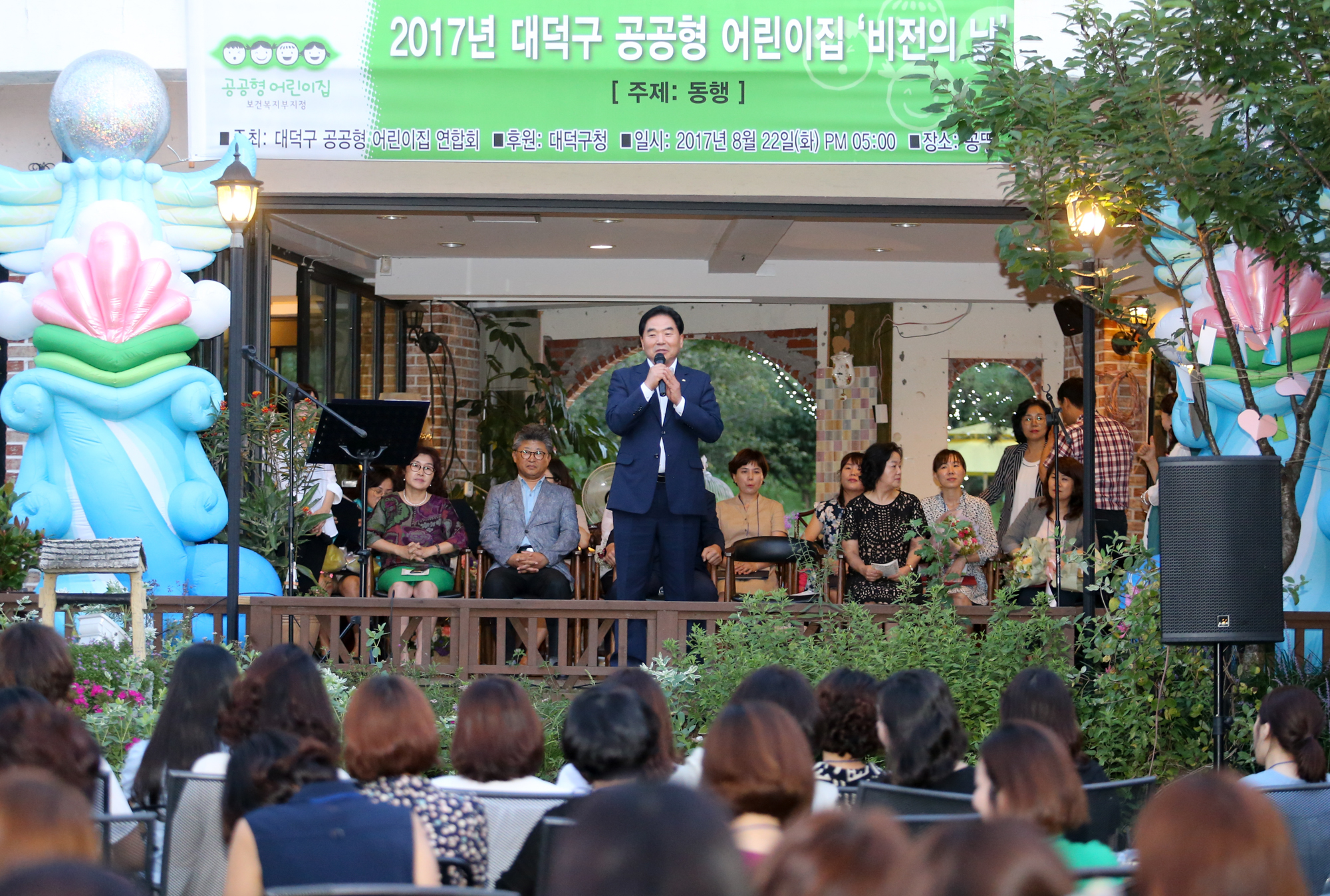 대덕구공공형어린이집 ‘비전의 날’개최 지난 22일 아이들과 교사가 모두 행복한 세상 주제로 열려 대덕구(구청장 박수범)는 지난 22일 연축동 소재 꽁뚜에서 공공형어린이집 원장 및 보육교직원 100여명이 참석한 가운데 대덕구공공형어린이집 ‘비전의 날’을 개최했다. 이날 행사는 ‘아이들과 교사가 모두 행복한 세상’이라는 주제를 가지고 구정방향인 통합과 섬김행정의 일환으로 보육교직원들의 노고 격려, 사기진작, 공공형어린이집연합회의 화합 증진을 위해 마련됐다. ‘비전의 날’은 공공형어린이집연합회에서 올해 처음 개최하는 행사로 희망의 풍등 날리기, 동행 콘서트 등을 통해 원장과 보육교직원 상호간 소통하고 힐링하는 계기가 됐다. 이날 행사에 참석한 박수범 대덕구청장은 보육 현장에서 헌신적으로 일해 온 보육교직원 4명에게 표창장을 수여하고 그동안의 노고를 격려했으며, 소통의 시간에서는 구청장과 보육교직원의 격의 없는 대화를 통해 그동안 박수범 구청장이 보여준 소통행정의 면모를 다시 한번 확인할 수 있는 뜻 깊은 자리가 됐다. 한편 공공형어린이집은 우수한 어린이집을 선정해 운영비를 지원하고 양질의 보육을 영유아에게 제공하는 등 우수 보육인프라로 기능할 수 있도록 하는 제도로써 대덕구에는 19개소의 공공형어린이집이 있다. |