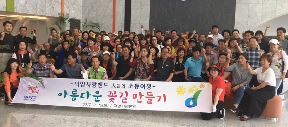 대덕구 덕암동‘덕암사랑밴드’의 아름다운 소통 여정 12일 밴드회원들의 오프라인 모임으로 덕암동 꽃길 조성 활동 펼쳐 대전 대덕구 덕암동을 아끼고 사랑하는 지역 주민들로 이뤄진 덕암사랑밴드(회장 김연옥)에서는 회원들이 지역 현장에서 만나 서로 소통하며 아름다운 꽃길을 조성했다. 이번 모임은 ‘덕암사랑밴드’ 공동리더들의 제안으로 이뤄졌으며, 동 주민센터에서 만나 KT&G 벚꽃 가로수길까지 가로환경 정비도 하고, 과선교 녹지공간에 유채꽃을 파종 하며 서로 애향의 아름다운 마음을 나누기도 했다. 김연옥 회장은 “덕암사랑밴드가 주민과 직접 소통하고 공유하는 공간이기도 하지만 다양한 민원을 신속하게 처리하고 지역발전에 필요한 다양한 의견을 수렴하는 소통의 공간이기도 하다”며 “이번 오프라인 모임을 통해 많은 밴드회원들이 지역사회를 위해 스스로 발 벗고 나섬에 자부심을 느낀다”고 말했다. 송광호 덕암동장은 “그간 밴드 회원들이 주로 온라인 공간에서 만남이 이뤄졌지만 이번 지역 현장에서의 만남으로 인해 실질적으로 주민들 간 친목을 다지고 이웃 간 따뜻한 정을 나누는 계기가 됐다”면서 “이후 온라인과 오프라인을 공유해 따뜻한 우리 마을을 만드는 데 활력소가 되길 바란다”고 말했다. |