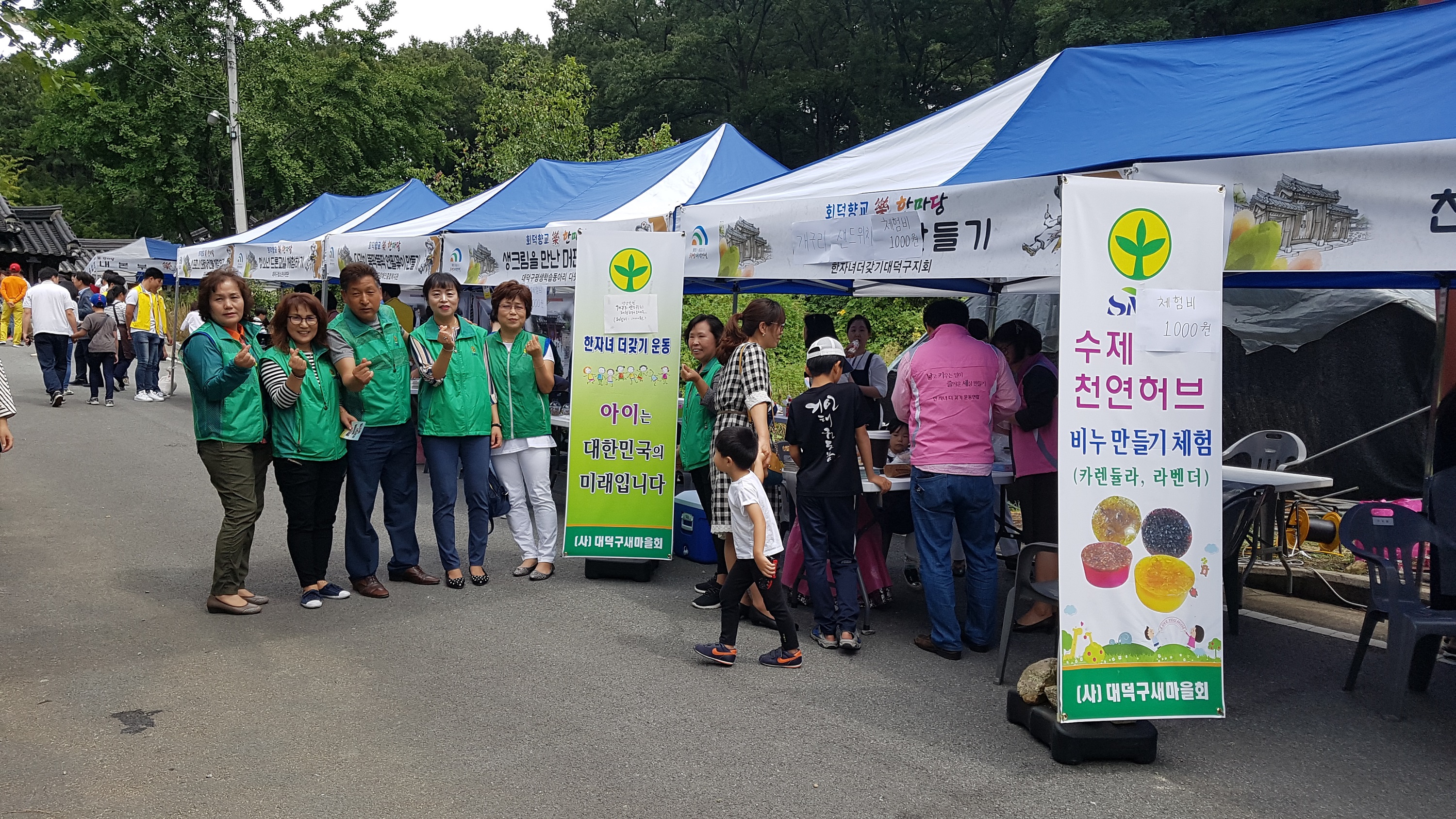 대덕구새마을회, 한자녀 더 갖기 운동 홍보활동 전개 대덕구새마을회(회장 김영태)는 지난 16일 2017 평생학습 행복주간 ‘락 한마당’ 행사장에서 (사)한자녀더갖기운동본부대덕구지부(지부장 윤선례)와 함께 한자녀 더 갖기 운동 홍보활동을 전개했다. 이날 출산 장려 정책 설명 및 홍보자료 나눠주기와 ‘샌드위치 만들기 체험’, ‘수제 천연허브 비누 만들기’ 체험 부스를 운영해 방문객들이 즐거운 시간을 보낼 수 있도록 알차게 진행됐다. |