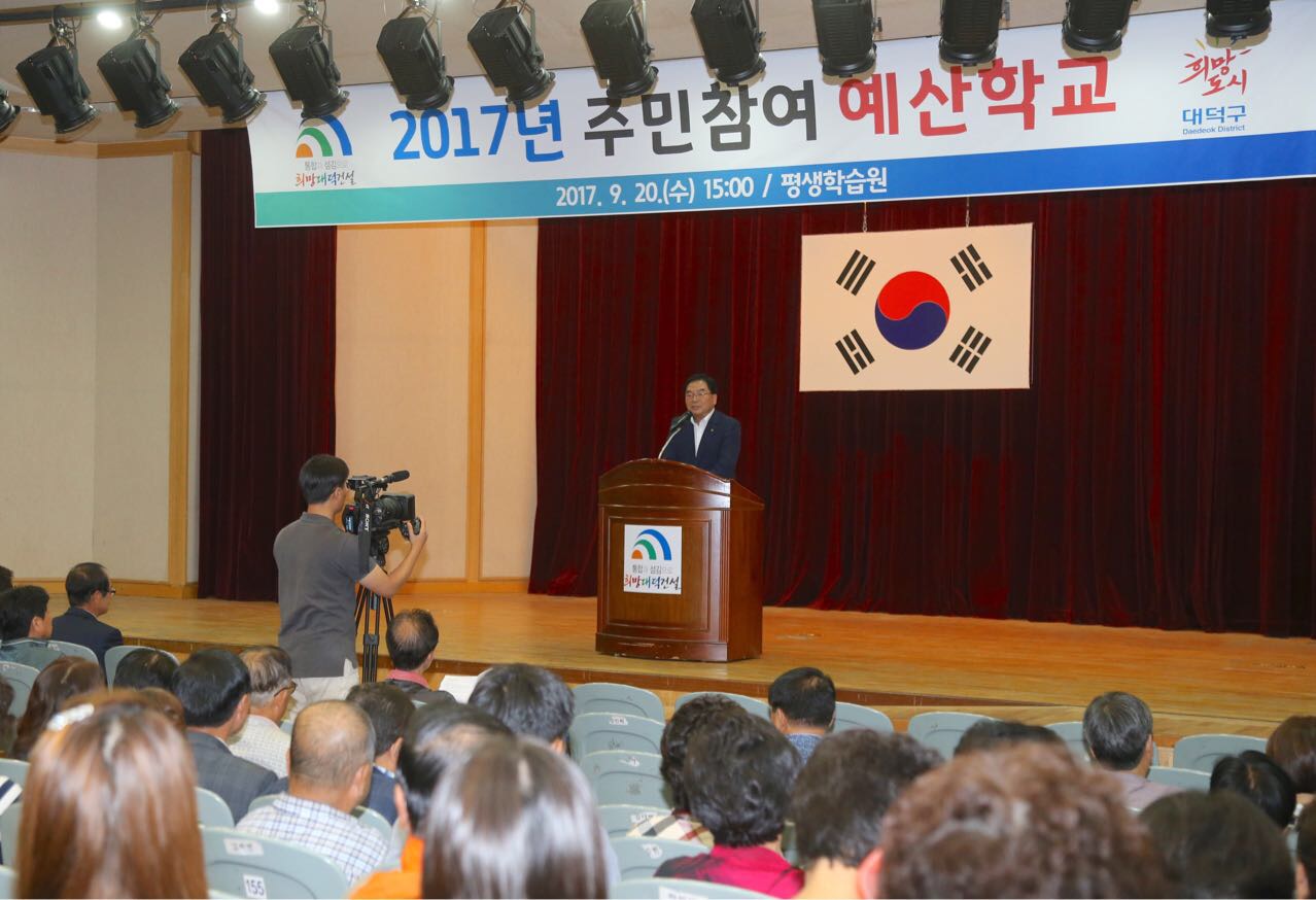 대덕구, 주민참여 예산학교 개최 대전 대덕구(구청장 박수범)는 20일 대덕구 평생학습센터에서 예산참여 구민위원, 주민 등 200여명이 참석한 가운데 주민참여 예산학교를 개최했다. 이번 예산학교는 다음 달 본격적으로 운영되는 주민참여예산제에 앞서 예산참여 구민위원들의 역량 강화와 주민들의 예산편성에 대한 이해를 돕기 위해 마련됐다. 구는 2005년 중부권에서 처음으로 실시한 주민참여예산제 활성화를 위해 예산학교를 개최해 오고 있으며, 이날 현 정부 재정분권 로드맵을 주제로 배재대학교 최호택 교수의 특강으로 진행됐다. 예산학교 실시에 이어 다음 달에는 예산참여 구민위원회의 토론과 의견수렴을 거쳐 내년도 예산에 주민의견이 반영될 예정이다. 이날 예산학교에 참여한 구민은 “예산학교를 통해 예산편성과정, 구 재정활동, 주민참여예산제의 중요성 등을 자세히 알게 됐다”며 “내년도 예산편성 주민참여예산제 활동에 많은 도움이 될 것”이라고 말했다. 박수범 대덕구청장은 “예산 편성과정에 주민이 직접 참여해 자신들의 선호와 우선순위에 따라 예산을 스스로 결정함으로써 참여와 자기결정이라는 지방자치의 이념을 구현하기 위한 주민참여예산제에 더 많은 주민들이 적극적으로 참여할 수 있도록 예산학교를 지속적으로 발전시켜 나가겠다”고 말했다. |