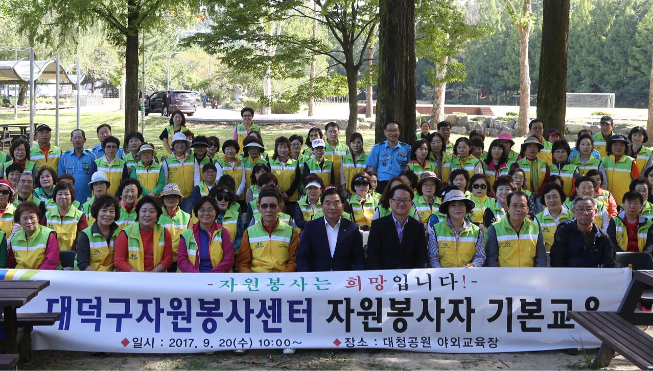(사)대덕구자원봉사센터, 자원봉사자 역량강화 교육 20일 자원봉사자 대상 250여명 교육, 지역공동체 형성 앞장 (사)대덕구자원봉사센터(이사장 박수범)는 20일 미호동에 위치한 대청공원에서 자원봉사자 250여명이 참석한 가운데 ‘2017 자원봉사자 역량강화 교육’을 개최했다. 이번 교육은 지역사회 발전을 위해 헌신적으로 노력하고 봉사하는 자원봉사자들을 격려하면서 다양하고 전문화된 교육을 통해 새로운 자원봉사 문화 창출을 위한 활력을 불어넣고자 마련됐다. 이날 ‘자원봉사 활동에 필요한 소통과 조화’란 주제로 강연을 펼친 장건영 강사는 자원봉사자의 역할과 활동의 중요성, 자원봉사가 지역사회에 미치는 영향과 행복하게 자원봉사 하는 방법 등의 노하우를 전수했다. 또한, 이어 안복기 강사의 ‘자원봉사 기능교육’ 강의로 웃음치료와 레크레이션 등으로 즐거운 시간을 갖고, 자원봉사 서로간의 활동사례를 공유하며 공감대를 형성하는 계기를 마련했다. 교육에 앞서 박수범 이사장은 “자원봉사자들의 공동체의식 함양과 자원봉사활동의 활성화로 아름답고 살기 좋은 지역공동체를 만드는 데 자원봉사자들이 선도적 역할을 수행해 나갈 수 있도록 이러한 교육을 지속적으로 개최하겠다”고 말했다. |