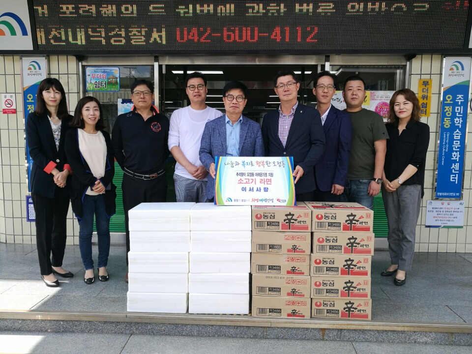 이서사랑, 대덕구 오정동에 추석맞이 사랑의 후원물품 전달 이서사랑(회장 김정덕)은 28일 추석을 맞이하여 오정동 지역의 어려운 이웃을 위해 써 달라며 라면 10상자와 소고기(30만원 상당)를 대덕구 오정동행정복지센터(동장 안정봉)에 전달했다. ‘이서사랑’은 이어서 사랑하자라는 뜻을 가진 평범한 직장인 14명으로 구성됐으며 지난 5년 동안 매월 법동에 쌀, 라면, 생필품 등을, 최근 1년간은 매월 오정동에도 라면 10상자를 전달해 나눔과 섬김의 봉사활동을 실천해 오고 있다. 김정덕 회장은 “회원들의 작은 정성이지만 어려운 이웃들이 따뜻한 추석을 함께 맞이했으면 좋겠다”고 말했다. 아울러 안정봉 동장은 “우리 오정동 소외계층을 위해 지난 1년 동안 잊지 않고 후원해 주신 정성에 감사드린다”며 “이렇게 따뜻한 사랑 나눔을 실천해 주셔서 오정동 지역의 어려운 이웃들이 훈훈한 명절을 맞이하게 됐다”고 감사의 말을 전했다. |