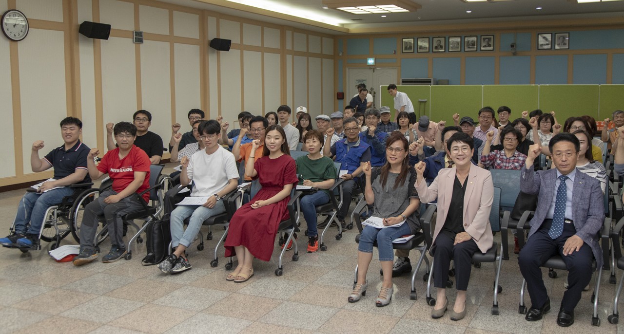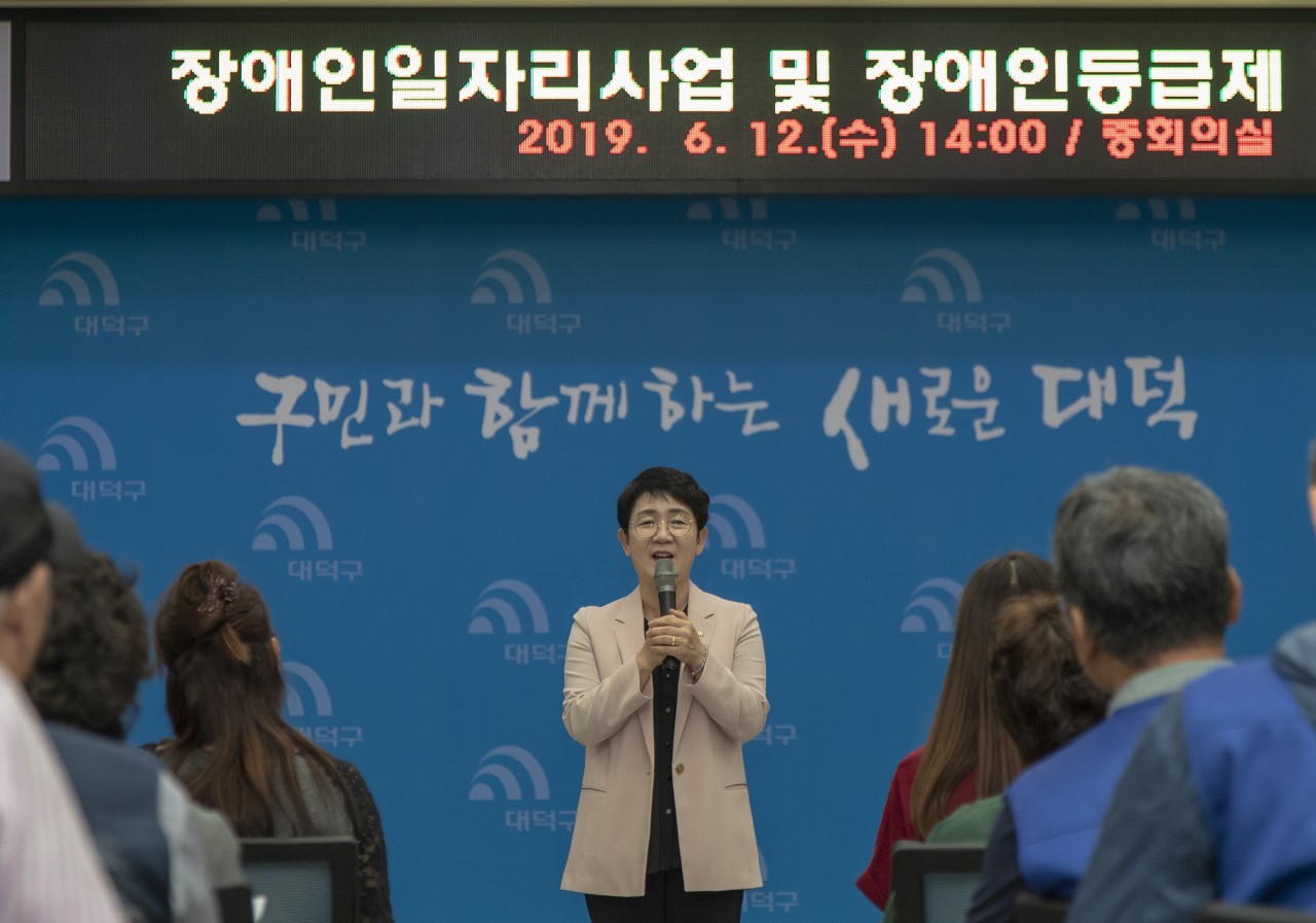 장애인의 자립, 대덕구가 응원합니다. 대덕구, 장애인일자리사업 및 장애인등급제 개편 안내 교육 대전 대덕구(구청장 박정현)는 12일 구청 중회의실에서 2019년 장애인일자리사업 참여자와 동행정복지센터 장애인복지담당자 62명을 대상으로 일자리사업 및 장애인등급제 개편 관련 교육을 실시했다. 구는 올해 취업 취약계층 장애인에게 장애유형별 맞춤형 일자리 제공을 위해 14억 5,000만원 예산으로 5개 유형의 사업을 발굴, 장애인 135명에게 안정적 일자리를 제공하고 있다. 이날 교육은 행정도우미와 장애인주차구역 계도요원으로 동행정복지센터, 구청, 복지관 등에서 근무 중인 장애일자리 참여자들의 사업에 대한 이해도와 업무수행능력을 높이기 위해 ▲ 장애인일자리사업 직무 및 복무교육 ▲ 장애인인식개선교육 ▲ 안전보건교육 ▲ 성희롱예방교육 등으로 진행됐다. 또한, 다음달 1일부터 개편되는 장애인등급제 개편 관련 최일선에 있는 동행정복지센터 장애인복지담당자를 대상으로 안정적 제도 시행을 위한 최종점검 교육을 실시하고, 정보를 공유하는 시간도 가졌다. 박정현 대덕구청장은 “ ‘최선의 복지는 일자리’라는 말처럼 계속적인 일자리 발굴을 통해 장애인의 사회참여 기회 확대 및 안정적인 소득보장을 지원할 수 있도록 적극 노력하겠다”며, “다음 달부터 시행되는 장애인등급제 개편이 우리 대덕구 장애인 개개인에게 맞춤형 복지를 제공하는데 불편함이 없도록 최선을 다하겠다”고 덧붙였다. |
