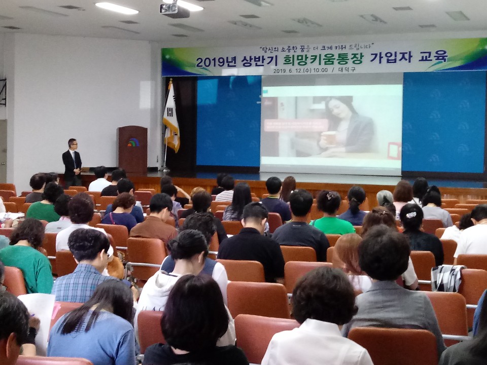 밝은 미래로 가는 희망, 당신과 같이 키웁니다. 대덕구, 일하는 저소득층을 위한 자립역량강화 교육 12일, 희망키움통장 가입자 250여명 대상으로 교육 대전 대덕구(구청장 박정현)는 12일 구청 청렴관에서 희망키움통장 가입자 250여명을 대상으로 자산형성지원 및 자립 자활에 필요한 목돈 마련을 위한 자립역량강화교육을 실시했다. 희망키움통장 가입자 자립역량강화 교육은 매년 상 하반기 2차례에 걸쳐 실시되며, 이번 교육은 국민연금공단 윤태준 노후준비 전문강사를 초빙하여 ‘저축과 보험’이라는 주제로 진행됐다. 강의에서는 목적별로 나눠보는 통장 쪼개기, 보험 가입 시 알아야 할 상식, 보험 리모델링 등 참여자들에게 유익한 정보를 제공했다. 한편한 건전한 재정상태 유지를 위한 희망키움통장Ⅱ는 성실하게 근로하고 있는 주거·교육급여 수급 및 차상위계층 가입자가 3년간 매월 10만원을 저축하면 정부가 근로장려금으로 매월 10만원을 지원하는 사업으로, 3년 만기 후에는 최대 360만원의 장려금을 지원 받게 된다. 대덕구에는는 현재 300여명의 가입자가 근로장려금을 지원받고 있으며, 2019년에도 4차에 걸쳐 희망키움통장 신규 가입자를 모집하고 있다. 구 관계자는 “앞으로도 일하는 저소득층의 자립 자활의지를 높일 수 있도록 체계적인 교육과 다양한 지원 시책을 추진하겠다.”고 밝혔다. |