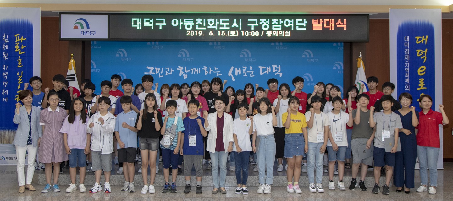 대덕구, 아동친화도시 구정참여단 발대식 대덕구(구청장 박정현)는 아동의 참여권 보장과 아동정책 실효성 확보를 위해대덕구 아동친화도시 구정참여단 발대식을 지난 15일 구청 중회의실에서 열고, 본격적인 활동에 들어갔다. 구정참여단은 대덕구 아동을 대표해 구정에 참여, 아동의 생각이 정책에 접목될 수 있도록 아동의 눈높이에서 다양한 아이디어를 제안하고, 정책에 반영되는지 모니터링 하는 역할을 하게 된다. 구는 지난 4월 중순부터 대덕구 소재 초,중,고등학교장 추천과 홈페이지 신청 등을 통해 대덕구에 거주하거나 관내 학교에 재학 중인 만 10세부터 18세까지 아동 40명을 모집, 세이브더칠드런서부지부와 위탁운영 협약을 맺고 운영한다. 이날 발대식에서는 단원들이 자부심을 갖고 열정적으로 활동할 수 있도록 위촉장 수여와 함께 모듬 구성, 오리엔테이션, 아동권리 교육 등의 시간이 마련됐다. 박정현 대덕구청장은 “아동의 입장에서 제안된 정책을 긍정적으로 검토하여 구정에 반영될 수 있도록 최선을 다하겠다”고 말하며, 구정참여단의 적극적인 활동을 당부했다. |