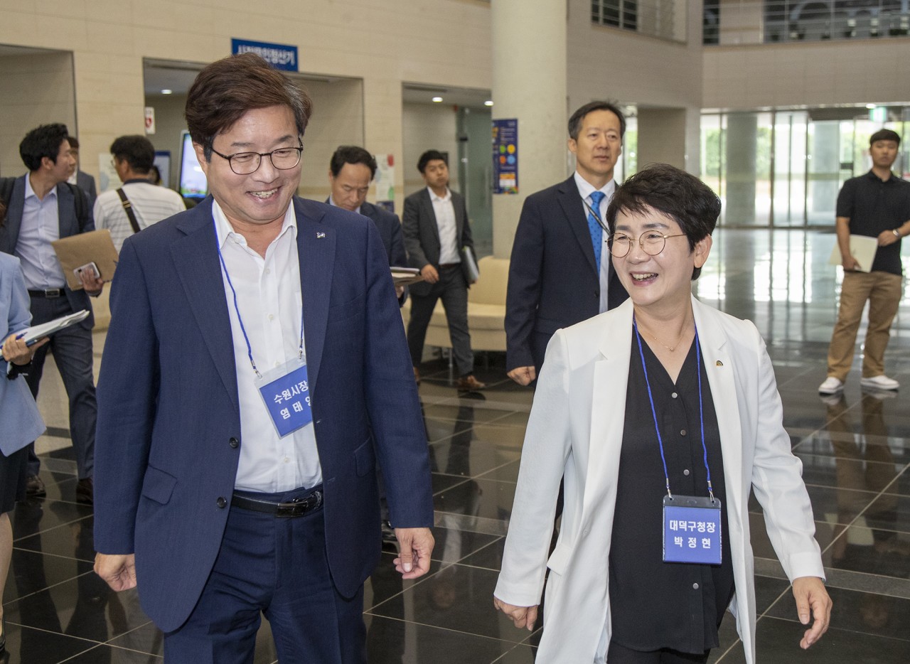에너지전환, 지역에서 협력으로 제2회 지역에너지전환 전국포럼 열려 대덕구 한남대에 전국 기초지자체장과 중앙정부 및 시민사회 관계자 등 400여명 모여 박정현 대덕구청장, ‘에너지거버너스 활성화와 지역에너지센터’를 주제로 한 포럼 좌장 맡아 ‘에너지정책 전환을 위한 지방정부협의회(이하 지방정부협의회)’는 27일 대전 대덕구 한남대학교 서의필홀에서 ‘에너지전환, 지역에서 협력으로’라는 주제로 2019 제2회 지역에너지전환 전국포럼을 개최했다. 지난 3월 수원 이후 대전 대덕구에서 두 번째로 열린 이날 포럼에는 지방정부협의회 지자체장과 중앙정부 및 시민사회 관계자 등 약400여명이 참석했다. 지역에너지전환을 위해 정부·시민사회가 함께 에너지거버넌스 체계 구축을 본격화하는 자리라는 점에서 의미가 깊다. 1부 행사에서는 염태영 수원시장(에너지정책 전환을 위한 지방정부협의회 회장)의 개회사로 시작해 ▲안병옥 운영위원장(대통령 직속 미세먼지 문제 해결을 위한 국가기후환경회의)의 ‘미세먼지 대응과 에너지전환’ ▲김성환 의원(국회 산업통상자원중소벤처기업위원회)의 ‘에너지분권과 지역의 도전’ 이라는 주제의 기조강연으로 이어졌다. 2부에서는 박정현 대덕구청장(에너지정책 전환을 위한 지방정부협의회 사무총장)이 사회와 좌장을 맡아 ‘에너지거버넌스 활성화와 지역에너지센터 설립·운영’이라는 주제로 포럼을 진행했다. ▲송용식 과장(산업통상자원부 에너지혁신정책과)의 ‘제3차 에너지기본계획과 지역에너지계획 수립’ ▲김성욱 책임연구원(경기테크노파크)의 ‘지역에너지센터의 역할과 운영’ ▲박승원 광명시장의 ‘지역에너지센터 추진사례와 도전과제’ ▲신근정 운영위원장(지역에너지전환네트워크)의 ‘지방정부와 시민이 만드는 에너지거버넌스’라는 주제 발표가 있었다. 이어 김홍장 당진시장, 송규진팀장(한국에너지공단 지역협력실), 양준화 사무총장(전국지속가능발전협의회), 양흥모 준비위원장(대전에너지전환민관네트워크) 등 참여자들이 발제자들과 함께 토론이 이어졌다. 지금까지 지역에너지전환은 지역 내 재생에너지 확산과 이를 통한 주민참여형 재생에너지 사업들 위주로 논의돼 왔으나, 이번 포럼에서는 지역에서 실질적으로 에너지전환과 에너지분권을 추진하기 위한 구체적인 방향과 지역의 도전과제가 제시되었으며, 정부와 시민이 함께하고, 다양한 이해관계자들이 모여 논의하는 에너지거버넌스의 상을 함께 그려보는 자리가 됐다. 좌장을 맡은 박정현 대덕구청장은 “이번 전국포럼이 지역에너지전환의 구체적인 방향과 지역에너지센터를 통해 에너지 분권을 시도하는 지역 사례를 공유하는 자리로 에너지전환의 실질적인 주체로서 역할과 권한을 확장하기 위한 발판이 마련됐다.” 고 밝혔다. |
