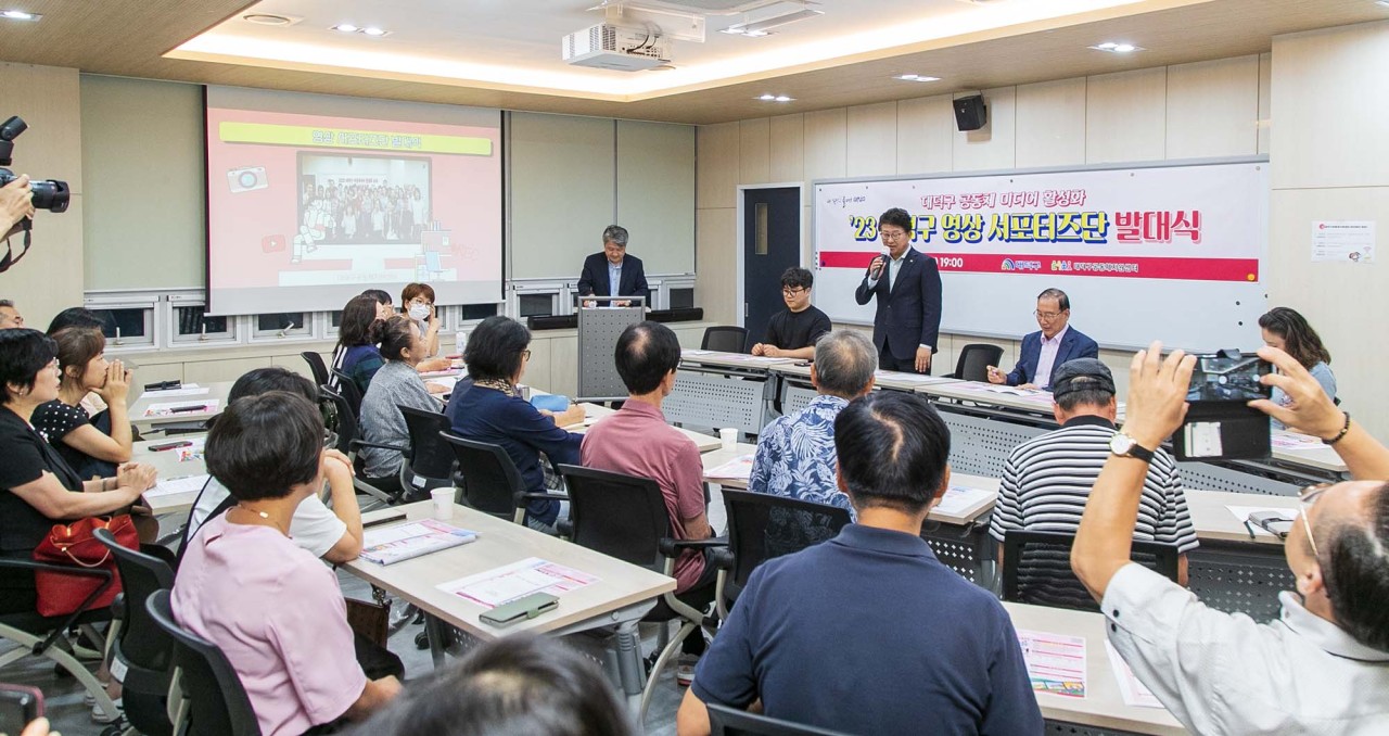 대전 대덕구, 공동체 미디어 기반 조성 팔 걷어 대덕구 영상 서포터즈단 발대… 마을 이슈·지역 관광 안내 영상 제작 대전 대덕구(구청장 최충규)는 뉴미디어 접근성 증진 및 공동체 미디어 활성화를 위해 ‘대덕구 영상 서포터즈단’ 발대식을 개최했다. 10일 대덕구에 따르면 ‘대덕구 영상 서포터즈단’은 디지털 시대에 맞는 마을방송 등 공동체 미디어 기반 조성을 목적으로, 마을공동체와 주민자치회 등 1인 미디어 교육(기초·심화)과정을 수료한 주민 28명으로 구성됐다. 이날 발대식은 조직 구성, 임원 선출, 활동 계획 논의 및 공유 등의 순으로 진행됐으며, 향후 서포터즈단은 대덕구 마을 이슈, 관광 등 관련 콘텐츠 제작 및 서포터즈 관련 행사 참석 등 다양한 활동을 담당하게 된다. 발대식에 참가한 최충규 대덕구청장은 “대덕구 영상서포터즈단이 우리 대덕의 아름다움과 문화적 가치, 천혜의 자원을 영상으로 담아 구민뿐만 아니라 모든 국민에게 소개해 대덕을 알고 대덕을 찾는 길잡이가 되어주길 바란다”고 말했다. [사진 설명 : 최충규 대덕구청장이 대덕구공동지원센터에서 열린 ‘대덕구 영상 서포터즈단 발대식’에 참석해 인사말을 전하고 있다.] |