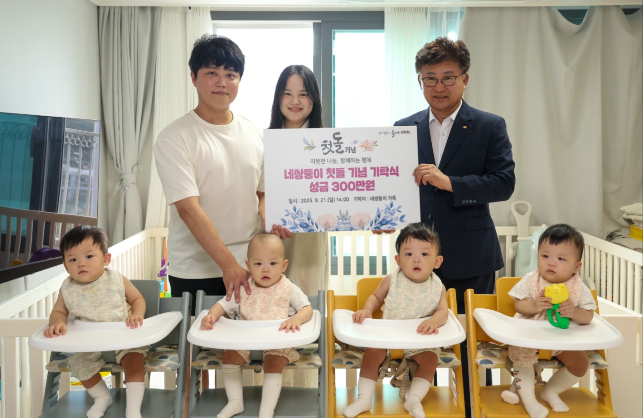 “사랑을 나눠요” 네쌍둥이 가정, 대전 대덕구에 첫돌 맞이 성금 300만원 기탁