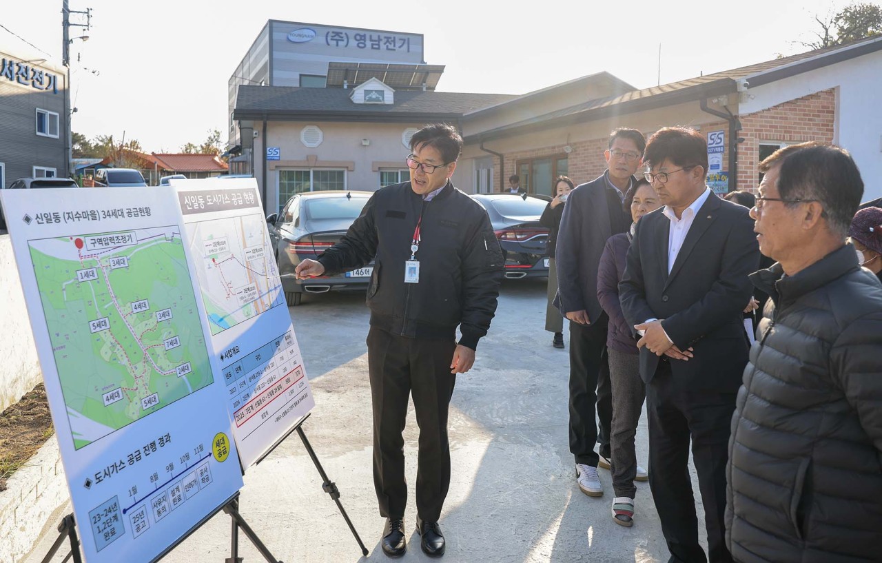 대전 대덕구, 신일동 도시가스 공사 착공… 주민 숙원사업 결실 도시가스 미공급지역 38세대 대상… 3개년 계획 마지막 단계 돌입 예산·부지 확보 난관 넘어 올해 말 공급 목표로 공사 ‘속도’ 대전 대덕구(구청장 최충규)는 도시가스 장기 미공급 지역이었던 신일동 지수마을의 도시가스 공급 공사가 이달 6일 본격 착공됐다고 밝혔다. 대덕구 신일동 34-5 일원 지수마을은 약 38세대가 거주하는 지역으로, 도심에 있음에도 그동안 도시가스 공급이 이뤄지지 않아 주민 불편이 지속돼 왔다. 대덕구는 주민 생활 여건 개선을 위해 공급사 씨엔씨티에너지(주)와 함께 2023년부터 3개년 공급 계획을 추진해왔으며, 올해 공급의 마지막 단계인 마을 내부 배관 인입 공사에 착수했다. 특히, 공사 추진 과정에서 예산 확보, 조정기 부지 협의, 국유지 사용 승인 등 난관을 거쳐 추가 투자비 2억원을 확보하며 정상 추진됐다. 구는 12월 말 공급을 목표로 공사 속도를 높이고 있다. 최충규 대덕구청장은 지난 19일 현장을 찾아 “주민 불편이 컸던 숙원사업이 드디어 해결 단계에 들어섰다”며 “예정된 기간 내 안전하게 공사를 마무리해 주민들께서 따뜻한 겨울을 보내실 수 있도록 최선을 다하겠다”고 말했다. [사진 설명(1) : 최충규 대덕구청장(사진 왼쪽 네 번째)이 19일 신일동 지수마을을 방문해 도시가스 공급 공사 관련 브리핑을 청취하고 있다.] [사진 설명(2) : 최충규 대덕구청장(사진 왼쪽)이 19일 신일동 지수마을을 방문해 도시가스 공급 공사 관련 당부를 전하고 있다.] |