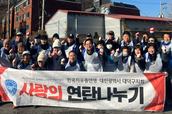한국자유총연맹 대전대덕구지회, 회덕동 난방 취약가구에 연탄 600장 지원 대전 대덕구 회덕동(동장 성태현)은 5일 한국자유총연맹 대전대덕구지회(회장 전원식)가 난방 취약가구를 대상으로 연탄 나눔 봉사활동을 진행했다고 밝혔다. 이날 활동에는 한국자유총연맹 대전대덕구지회 회원 30여 명이 참여해 난방비 부담으로 어려움을 겪는 지역 내 취약계층 2가구를 찾아 연탄 600장(가구당 300장)을 직접 전달했다. 전원식 한국자유총연맹 대전대덕구지회장은 “본격적인 겨울 추위 속에서 어려운 이웃들이 조금이라도 따뜻한 시간을 보낼 수 있길 바란다”며 “앞으로도 지역사회에 필요한 나눔 활동을 꾸준히 이어가겠다”고 말했다. 성태현 회덕동장은 “회덕동의 어려운 가정에 따뜻한 마음을 전해주셔서 깊이 감사드린다”며 “앞으로도 복지 사각지대 없이 모두가 따뜻하게 겨울을 보낼 수 있도록 노력하겠다”고 말했다. [사진 설명 : 한국자유총연맹 대전대덕구지회 회원들이 5일 대전 대덕구 회덕동 지역 주민에게 연탄 배달을 하기 전 기념 촬영을 하고 있다.] |