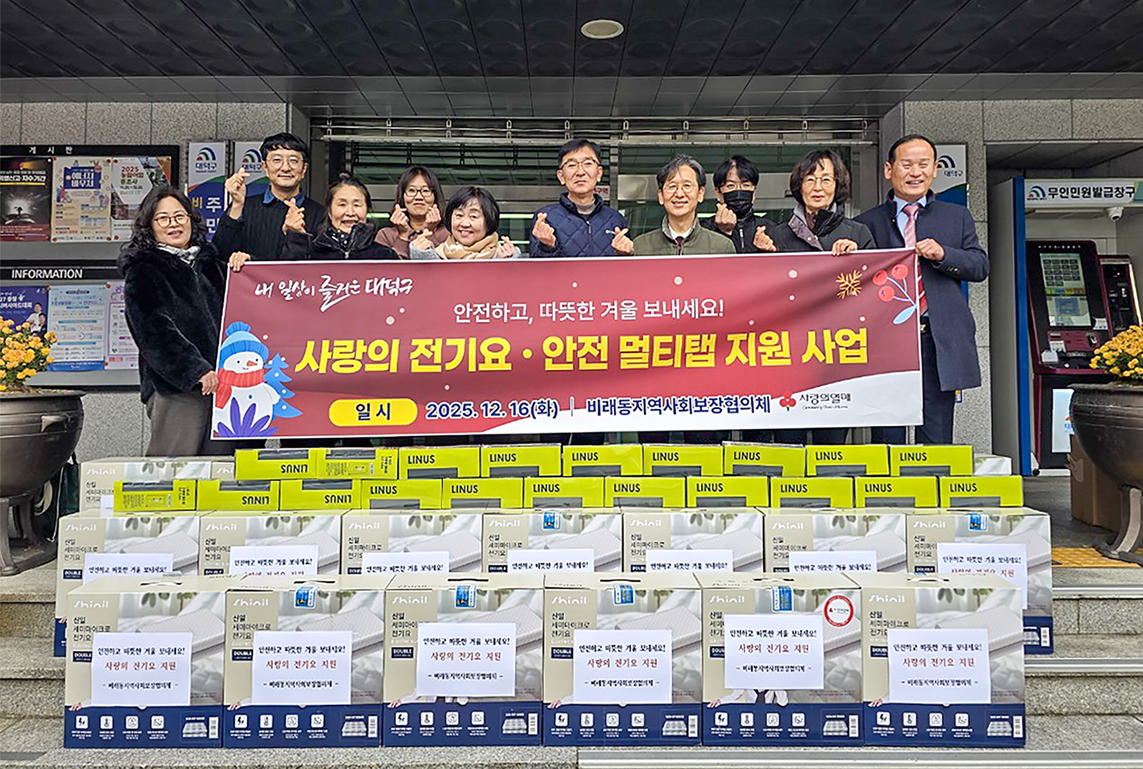 대전 대덕구 비래동 지역사회보장협의체, 난방 안전 지원 나서 지역 저소득층 20가구에 전기요·안전 멀티탭 교체 대전 대덕구 비래동(동장 송치선)은 비래동 지역사회보장협의체(민간위원장 장세철, 이하 협의체)가 겨울철 화재 위험에 노출된 저소득층 20가구를 대상으로 난방 안전 지원 사업을 추진했다고 밝혔다. 이번 사업은 협의체가 동절기 취약계층 가구를 방문해 안전 실태를 점검하는 과정에서 화재 위험 요소가 다수 확인되면서 추진됐다. 협의체는 긴급 안건으로 사업을 결정하고 노후 전기장판을 안전한 전기요로 교체했으며, 문어발식 콘센트는 안전 멀티탭으로 교체하는 등 화재 예방과 난방 효율 향상을 도모했다. 장세철 비래동 지역사회보장협의체 민간위원장은 “주민들의 일상 안전에 실질적인 도움이 되길 바란다”며 “앞으로도 지역 주민의 안전과 복지 증진을 위해 지속적으로 노력하겠다”고 말했다. 송치선 비래동장은 “어려운 이웃을 위해 따뜻한 온기를 베풀어주신 지역사회보장협의체 위원 여러분께 감사드린다”며 “앞으로도 모두가 안전하고 행복한 비래동을 만들기 위해 최선을 다하겠다”고 전했다. [사진 설명 : 송치선 비래동장(사진 왼쪽 여섯 번째)과 장세철 비래동 지역사회보장협의체 민간위원장(사진 왼쪽 일곱 번째), 비래동 지역사회보장협의체 위원들이 16일 겨울철 취약계층 가구를 위한 전기요·안전 멀티탭을 전달한 후 기념 촬영을 하고 있다.] |