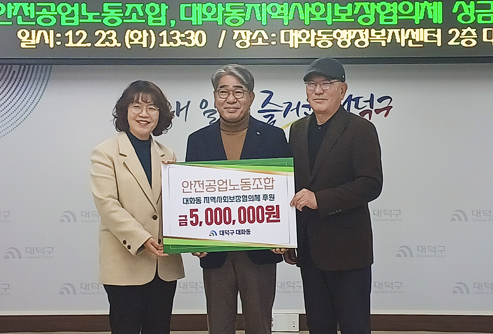 안전공업노동조합, 대덕구 대화동 지역사회보장협의체에 500만원 기탁