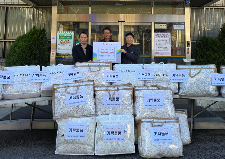 대덕산업단지관리공단 환경사업소, 대전 대덕구 목상동에 겨울나기 후원물품 기탁 지역 취약계층 대상 침구세트 13세트 전달 대전 대덕구 목상동(동장 박한욱)은 30일 대덕산업단지관리공단 환경사업소(전무이사 송관열)로부터 취약계층의 따뜻한 겨울나기를 돕기 위한 겨울 침구세트 13세트를 기탁받았다고 밝혔다. 송관열 대덕산단 전무이사는 “작은 정성이 모여 큰 사랑이 되고, 이번 나눔이 어려운 이웃들에게 따뜻한 겨울 선물이 되길 바란다”며 “앞으로도 지역사회에 온기를 전할 수 있도록 지속적인 나눔 활동을 이어가겠다”고 말했다. 박한욱 목상동장은 “어려운 이웃들을 위해 후원물품을 기탁해주신 대덕산단에 깊이 감사드린다”며 “지역 취약계층이 따뜻한 겨울을 보낼 수 있도록 행정적 지원을 아끼지 않겠다”고 전했다. 한편, 대덕산단은 매년 지역 내 취약계층을 위한 후원과 나눔 활동을 꾸준히 이어오고 있다. [사진 설명 : (사진 왼쪽부터) 송관열 대덕산업단지관리공단 전무이사, 박한욱 목상동장, 유용선 대덕산업단지관리공단 환경사업소장이 30일 취약계층의 따뜻한 겨울나기 돕기를 위한 겨울 침구세트 기탁식 후 기념촬영을 하고 있다.] |
