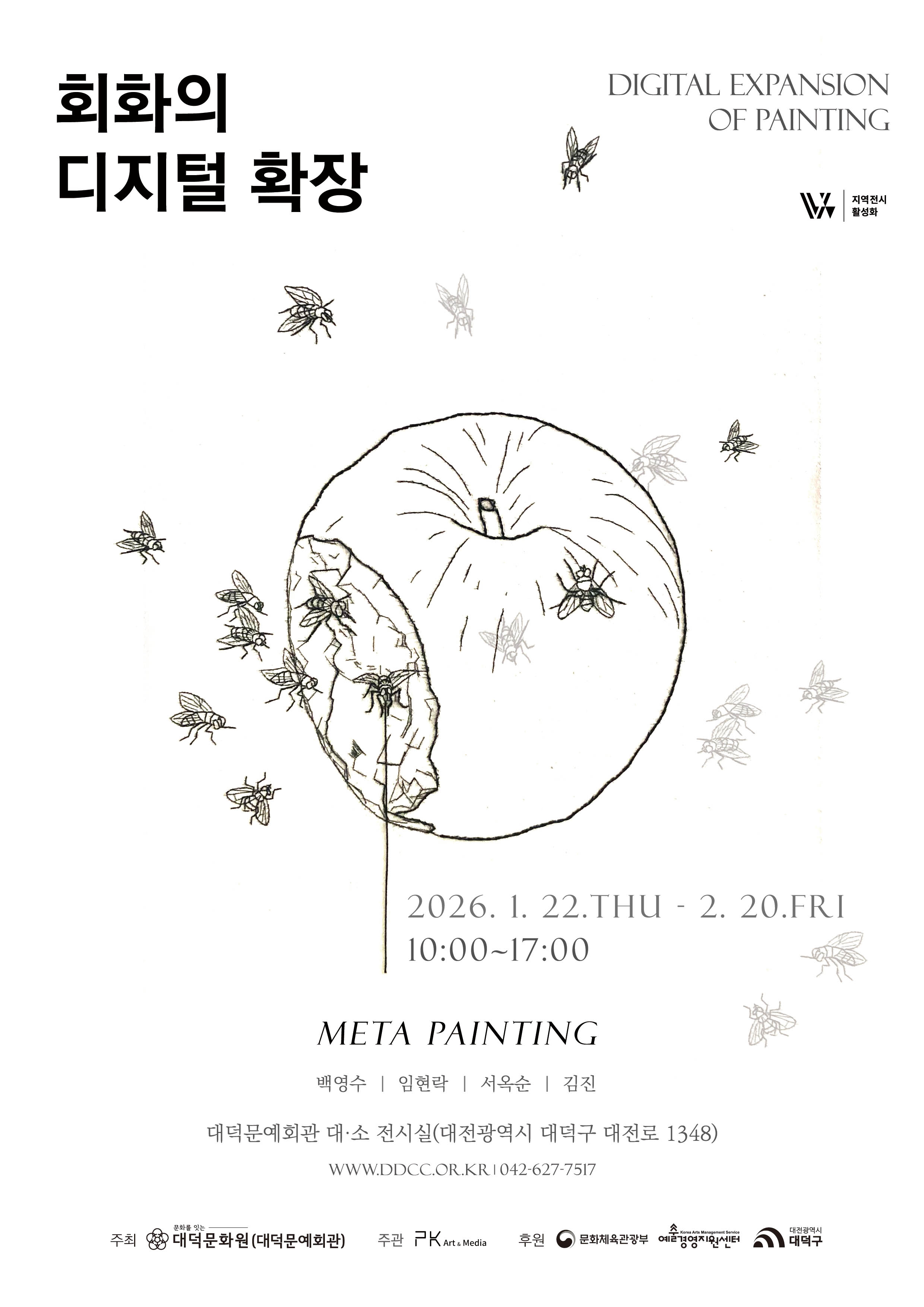 대덕문화원, 디지털 시대 속 회화의 새로운 가능성 제시 내달 20일까지 디지털 예술전시 ‘메타 페인팅-회화의 디지털 확장’ 개최 원작 회화·디지털 확장 이미지 동시 감상 기회 제공… 전문 해설 프로그램 운영도 대전 대덕구는 내달 20일까지 대덕문화원 전시실에서 디지털 예술전시 ‘메타 페인팅–회화의 디지털 확장’을 개최한다. 이번 전시는 (재)예술경영지원센터가 주관한 ‘2025년 지역전시 활성화 사업’의 일환으로, 미디어아트 전문 기관 PK Art&Media(피케이아트앤미디어)의 콘텐츠를 통해 지역 주민에게 디지털 예술 체험 기회를 제공하고자 기획됐다. ‘메타 페인팅–회화의 디지털 확장’은 원작이 지닌 조형성과 미적 맥락을 존중한 상태에서 디지털 기술을 적용한 전시다. 특히 단순한 이미지 변형을 넘어 회화에 내재된 시간성과 감각을 움직임과 형태의 변주로 확장해 새로운 이미지를 구현하면서 원작이 지닌 조형적 긴장감과 감정의 밀도를 유지하는 것이 특징이다. 이러한 전시 특성을 바탕으로 관람객은 원작 회화와 디지털로 확장된 이미지를 함께 감상하며 표현 방식의 변화를 비교·체험할 수 있다. 아울러 전시 이해를 돕기 위해 도슨트(Docent·전문 해설사) 프로그램도 함께 운영될 예정이다. 전시 관련 자세한 일정과 내용은 대덕문화원 홈페이지를 통해 확인할 수 있다. 대덕구 관계자는 “전통 회화와 디지털 기술이 결합된 새로운 예술 형식을 소개하는 의미 있는 전시”라며 “지역 문화예술의 저변을 확대하고 주민들의 문화 향유 기회를 넓히는 계기가 되길 바란다”고 말했다. [사진 설명 : ‘메타 페인팅-회화의 디지털 확장’ 홍보 포스터] |