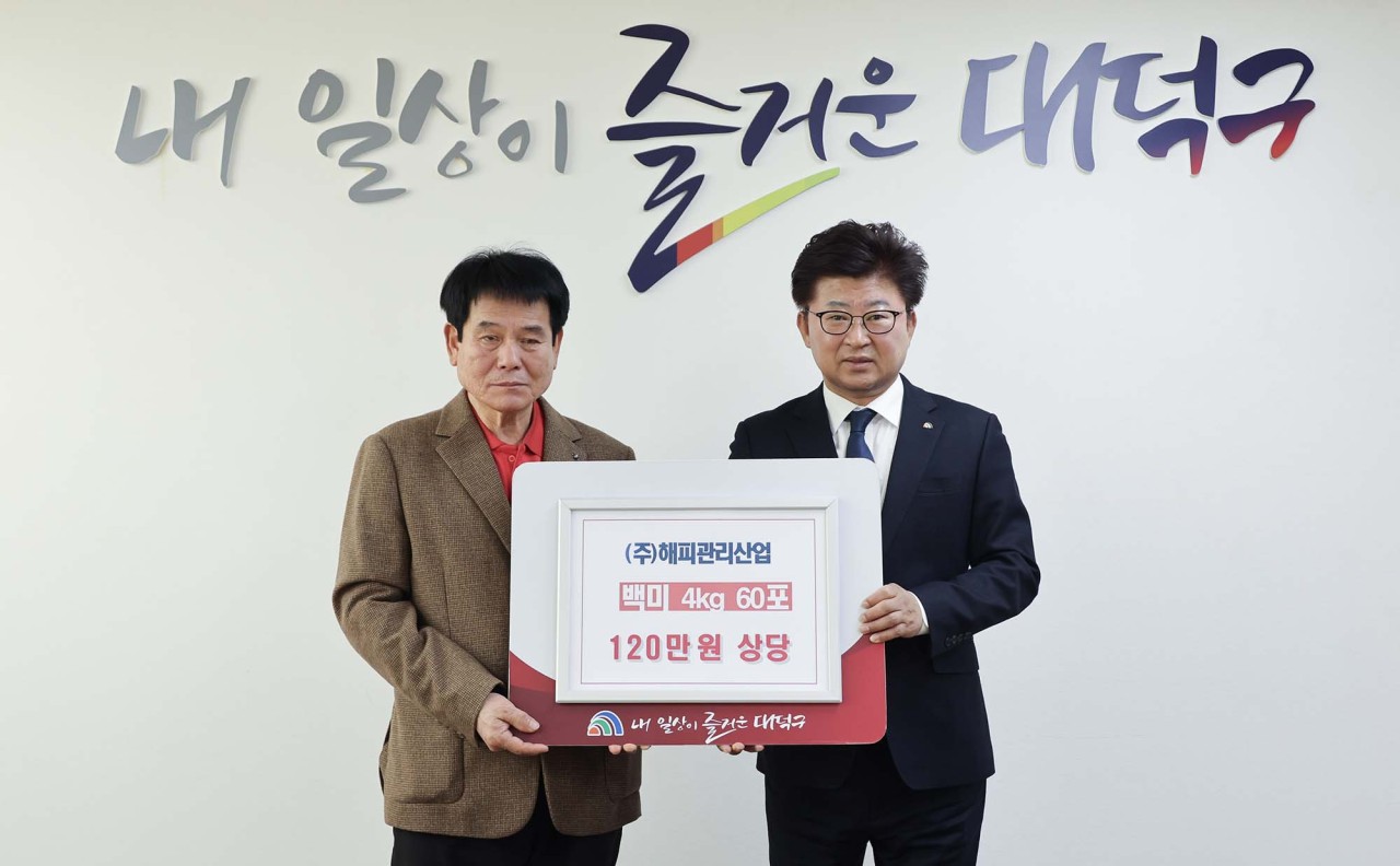 ㈜해피산업관리, 대전 대덕구에 ‘사랑의 백미’ 전달