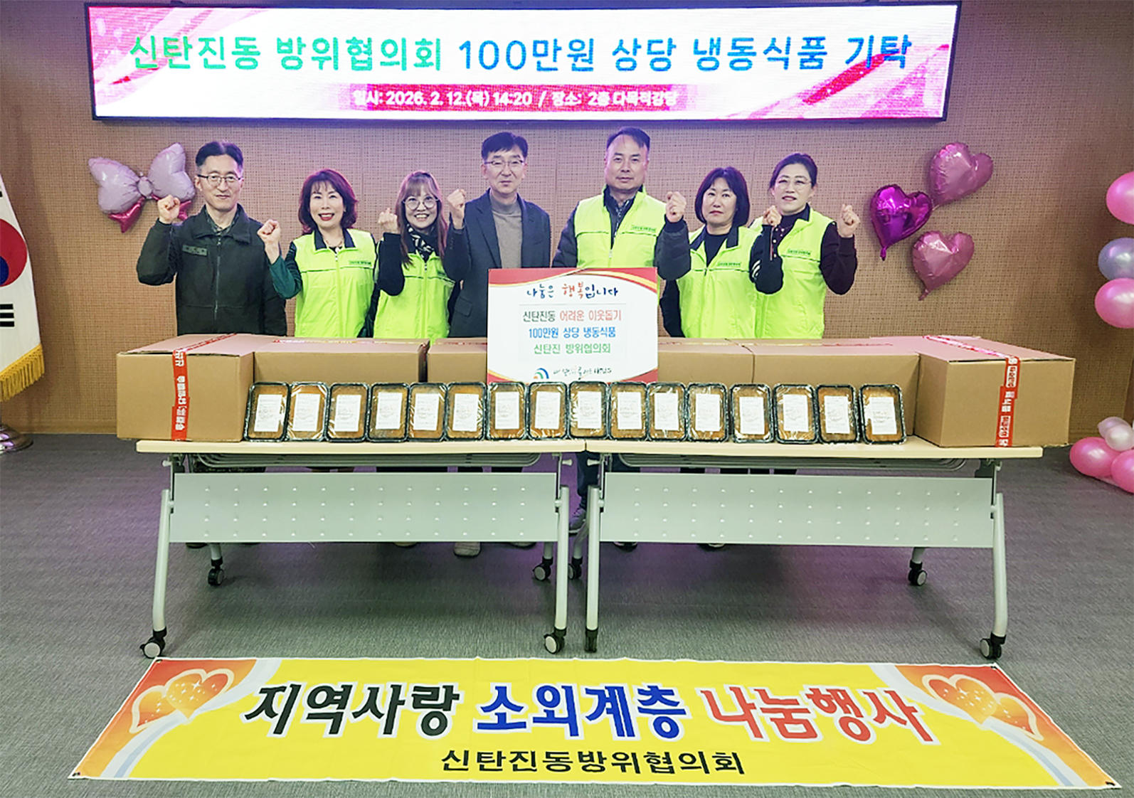 대전 대덕구 신탄진동 방위협의회, 100만원 상당 냉동식품 기탁 대전 대덕구 신탄진동(동장 송치선)은 신탄진동 방위협의회(위원장 김용준)가 지역의 어려운 이웃을 위해 100만원 상당의 냉동식품을 기탁했다고 밝혔다. 이날 기탁된 냉동식품은 신탄진동 행정복지센터 맞춤형복지팀을 통해 저소득 가구에 전달될 예정이다. 김용준 신탄진동 방위협의회 위원장은 “모두가 어려운 시기이지만 우리 주변의 어려운 이웃들이 끼니를 거르는 일이 없기를 바라는 마음으로 정성을 모았다”며 “일회성 기부에 그치지 않고 우리 동네의 든든한 버팀목이 될 수 있도록 지속적으로 나눔을 이어가겠다”고 말했다. 송치선 신탄진동장은 “지역 취약계층을 위한 세심한 배려가 담긴 후원 물품을 기탁해 주셔서 감사드린다”며 “기탁자의 뜻에 따라 도움이 필요한 이웃에 소중히 전달하겠다”고 말했다. [사진 설명 : 송치선 신탄진동장(사진 가운데)과 김용준 위원장, 신탄진동 방위협의회 위원들이 지역 어려운 이웃을 위한 냉동식품 기탁식을 마친 뒤 기념사진을 촬영하고 있다.] |