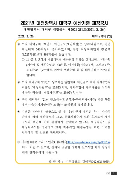 ´ëÀü±¤¿ª½Ã ´ë´ö±¸ ÀçÁ¤°ø½Ã Á¦2021-211È£(2021. 2. 26.)